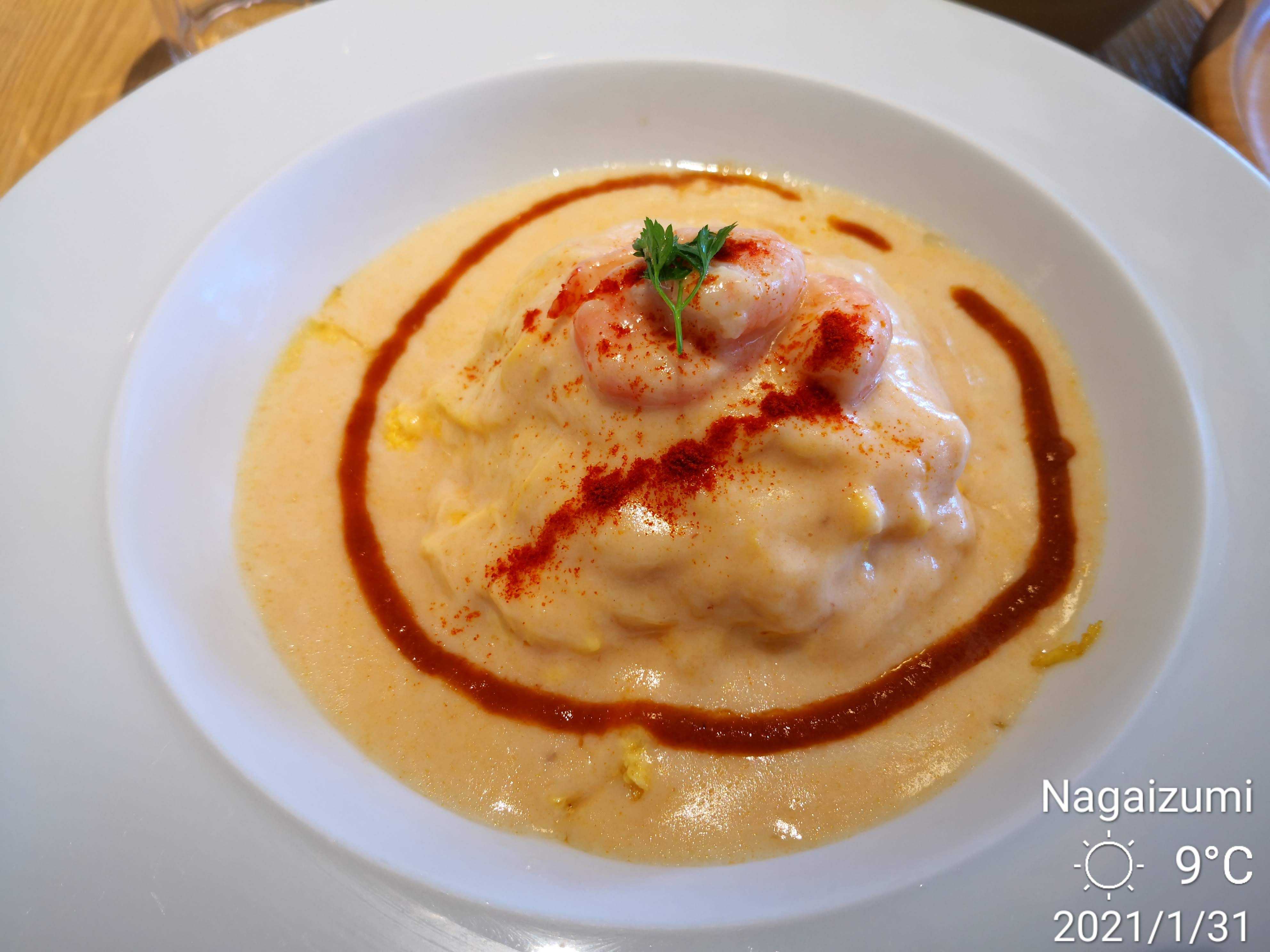 オイラは海老のビスククリームオムライスを頼んだ