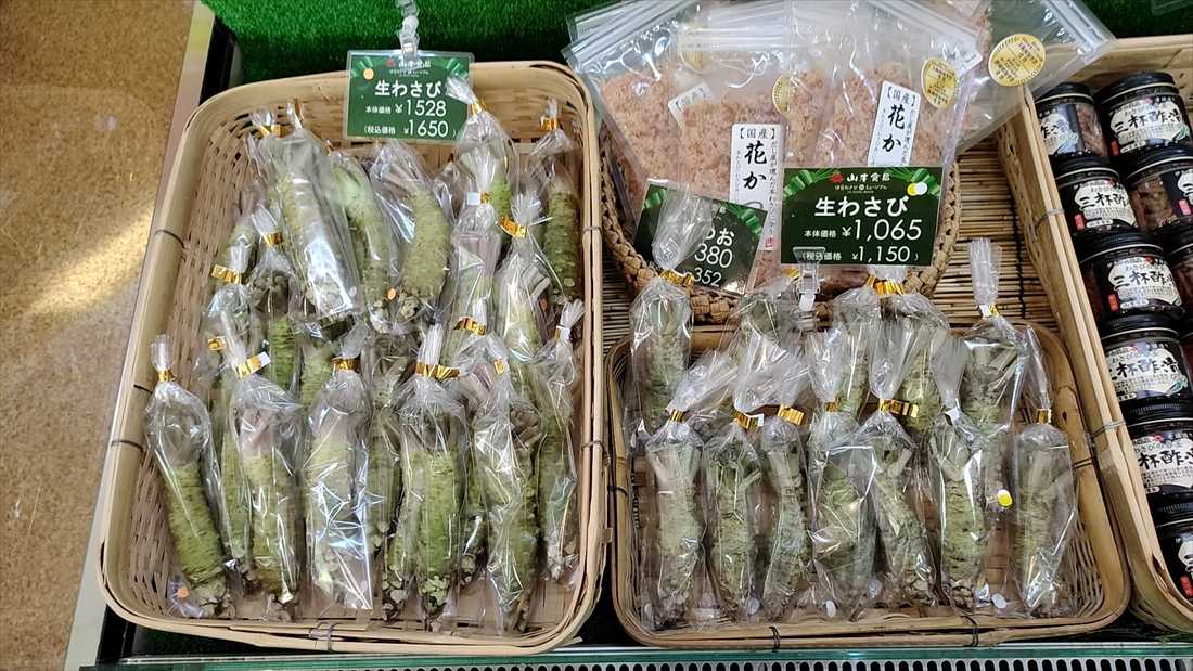 土産は一番辛いと奨められたわさび漬けと農兵漬けと追い茎本わさび