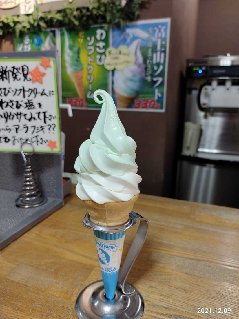 浄蓮の滝で食べたわさびソフトはちゃんとしてたけどここのはインチキだな