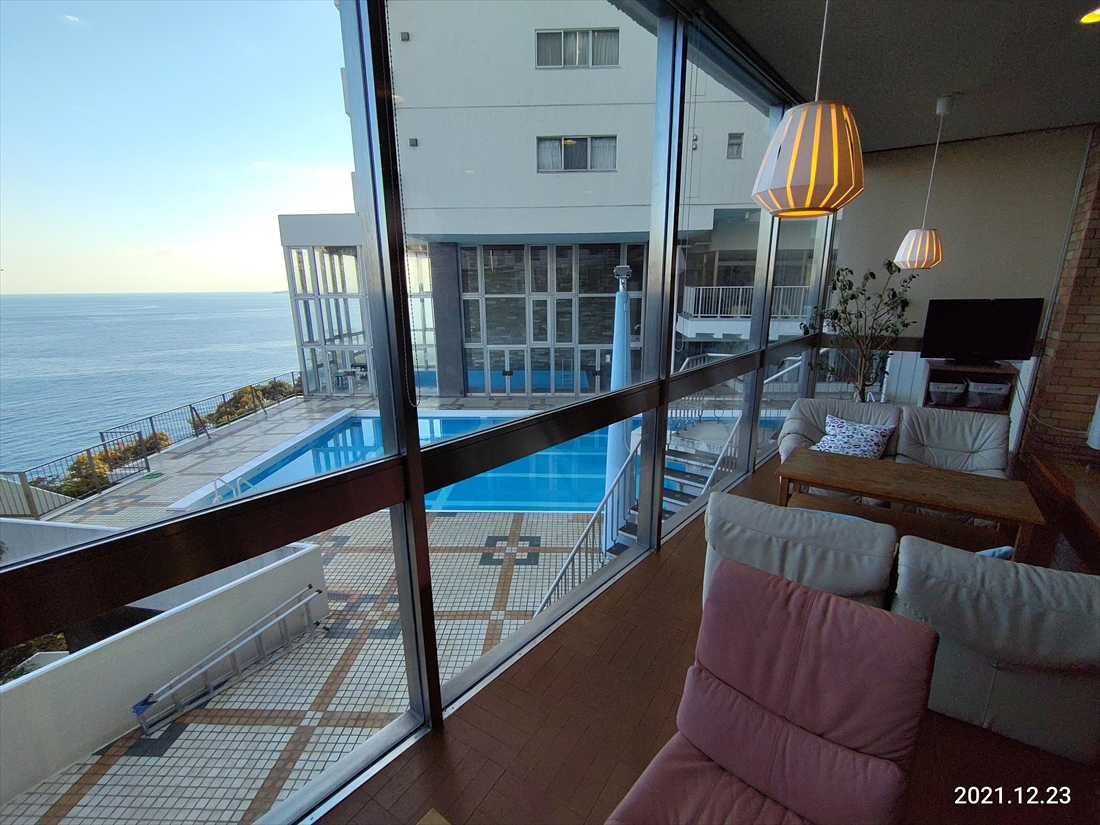 一番端の海よりのソファーになってる席にした