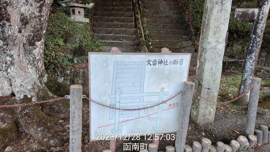 次は関東大震災で断層のズレが見られるという 火雷神社