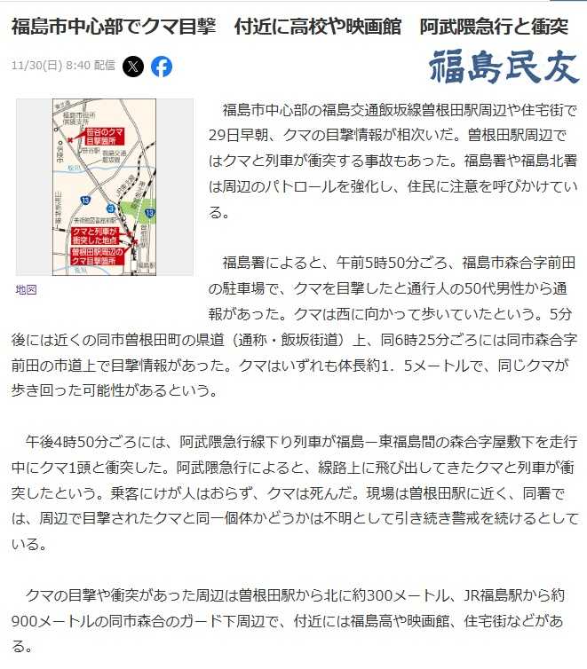 とうとう市街地に熊🐻が出た 空29日11℃ November 30, 2025