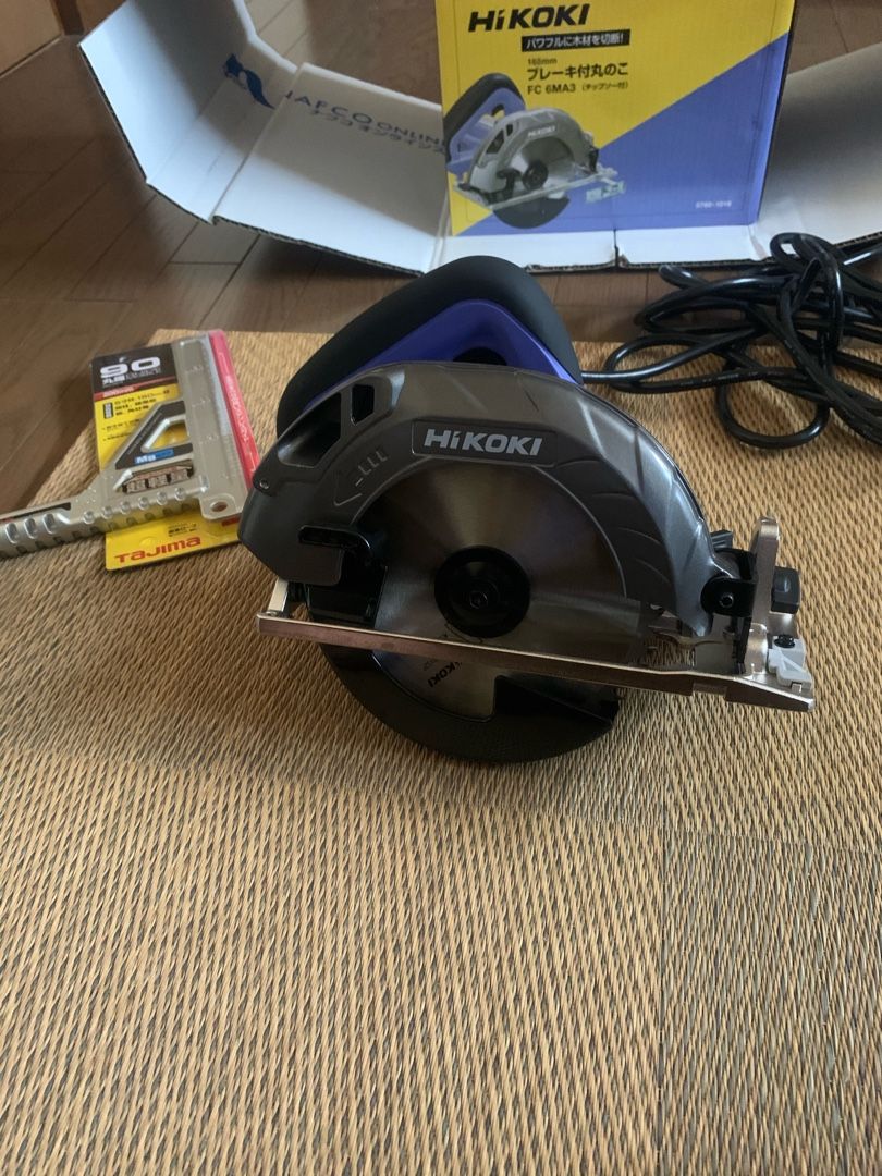 とうとう丸鋸を手に入れましたYouTubeなどで調べまくった結果買ったのはハイコーキのFC6MA3!!!! HiKOKI (ハイコーキ) 丸のこ FC6MA3 奥行27.6×高さ23×幅210cm45㎜の板を切断したかったので最大切り込み深さ57㎜のFC6MA3にしましたプロ仕様の2~3万円位の上位モデルも欲しかったのですがDIYで初めてなのでとりあえずのDIY仕様にしましたマキタと悩んだのですがFC6MA3のほうが新しいようで……なんとなく決定初めての丸鋸は思ったより重いと感じました軸ブレはありませんでした165㎜のチップソーですこれはその気になれば指から腕まで切断可能でございますついでに 【タジマ TAJIMA】タジマ 丸鋸ガイド モバイル 90 マグネシウム MRG-M90M丸鋸ガイドを買いましたこれは200㎜で1500円位なのですがこれ以上大きいのは急に5千円とかするので最初はとりあえずこれを買いました。これでようやく盆栽棚の製作に着手いたします回転系の電動工具はケガしそうで怖いので慎重にやっていきたいと思いますこの丸鋸がなくてと言うか避けていたので今までDIYをあきらめていましたが回転系電動工具恐怖症を克服していざDIYを極めてやろうかの勢いでございますしかしサンダーとか丸鋸って本当に怖いんですよねぇ