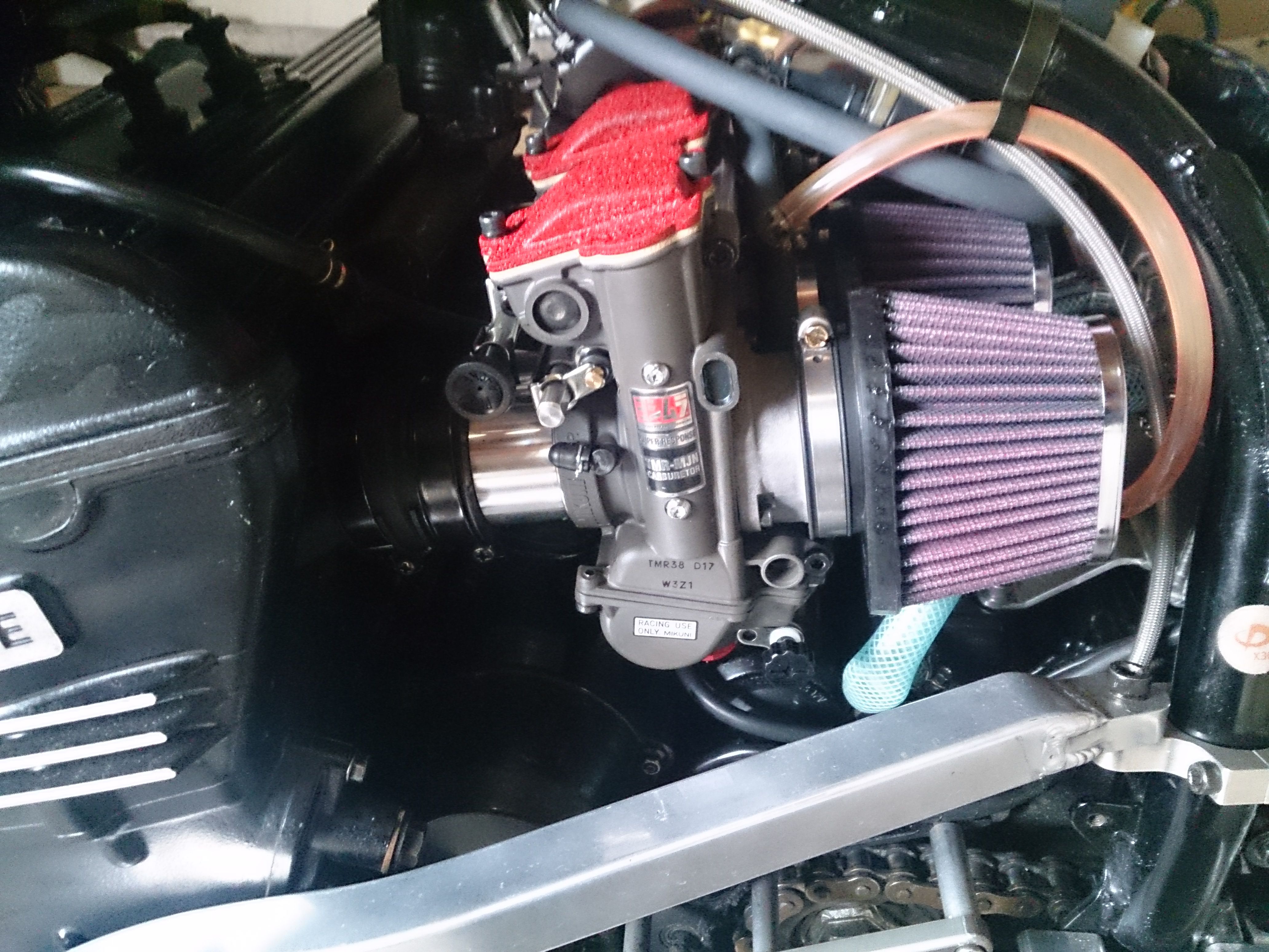 先代のバイクですがバイクを速くしようと思ったらキャブ交換だ!という事でキャブ交換しました。定番のヨシムラキャブTMRGPZ900Rくらい古いバイクはキャブがそのまま取り付けできるわけでもなくタンクは取り付け部分にカラーをかまして1㎝~2㎝位上げてます。タンクのコックはピンゲルを使用(タンクにコックが当たるため)タンクが上がる事によるサイドカバー取り付け部の加工などすごくめんどくさいですA11の国内仕様でしたのでA6の逆車のFCRキャブ装着車と比べるとチョット遅いような?アクセルを開けた時の加速感はやっぱりFCRのほうが良かったですさすがにGPZ900Rはカスタムするにはとても良いバイクだと思いますインジェクション車にはかないませんがS1000Rに乗っちゃったので今となっては…