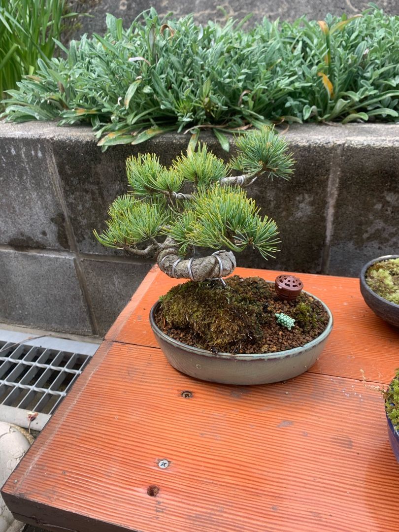 五葉松を手に入れて早4年程きっかけは外国人に盆栽が人気があるしSNSで見る盆栽はほとんど外国人ばかりで年寄りがチマチマやる感じではなかったし、すごく綺麗な盆栽ばかりです。花に水やって花がちゃんと咲くのが好きだったのでそれならひとつやってみようとなりました。五葉松はなんとなく自分で曲げてみたり剪定してみたりしているのですがもうどうしたら良いのかはわかりません毎朝水やりを淡々とこなすだけでございますしかし五葉松だけだとつまらないので桜を去年購入桜は季節によって変化を楽しめますが松は一年中そんなに変化はありません五葉松は植え替えも2~3年に一回で去年やってみましたがなんかうまくいきませんでしたそれで今年は紅葉をポッドで購入して余った鉢に植えています苔はあまったのをとりあえず押し込んである感じです。今度液体肥料をやってみたいと思います。そんな感じで五葉松、桜、紅葉、苔という4つの鉢が出来上がりましたそれぞれの盆栽はあまりカッコよくできませんがそれなりに飾っておきたいです次は楓か黒松か梅なんてほしいんですけどね