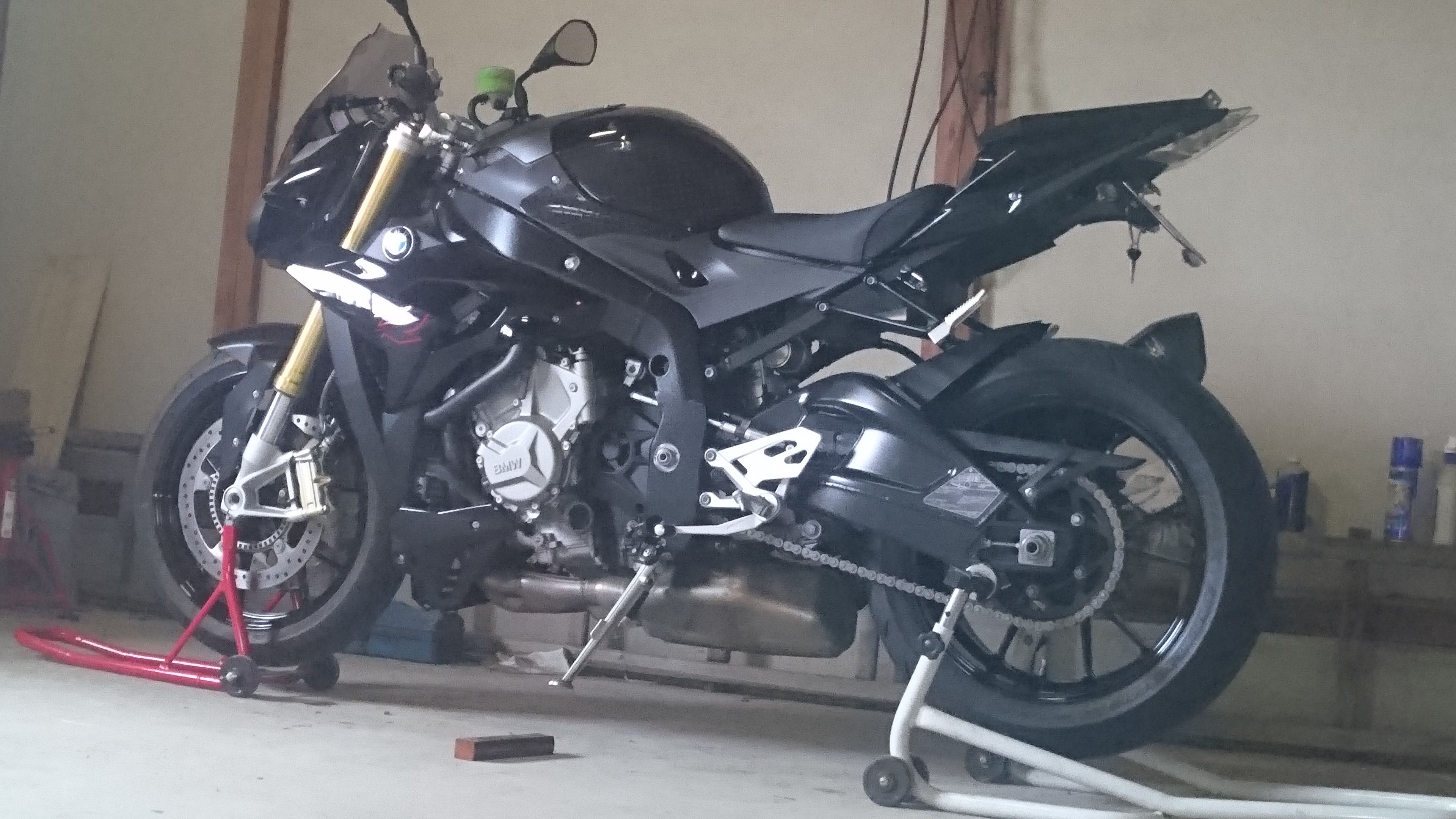 夜中に地震震度4さすがに目が覚めて逃げようかと思ったら揺れおさまった気を取り直してすぐ寝ようと…したけれどコッパ長からlineで大丈夫?とバイクのエンジンの心配それはともかく自分のバイク大丈夫かなと心配になり車庫へS1000Rも大丈夫コッパ長のカスタム途中のVTR250のエンジンも大丈夫忍者に乗ってるときも大きい地震にあいましたその時はリヤだけメンテナンススタンドをつけていましたが倒れる事はありませんでしたS1000Rはフロントもリヤも上げている状態でリヤのみの場合よりも安定してます。スタンドはメンテナンスと保管以外にも役に立ちますねJ-TRIP Jトリップ ジェイトリップ メンテナンススタンドホワイト