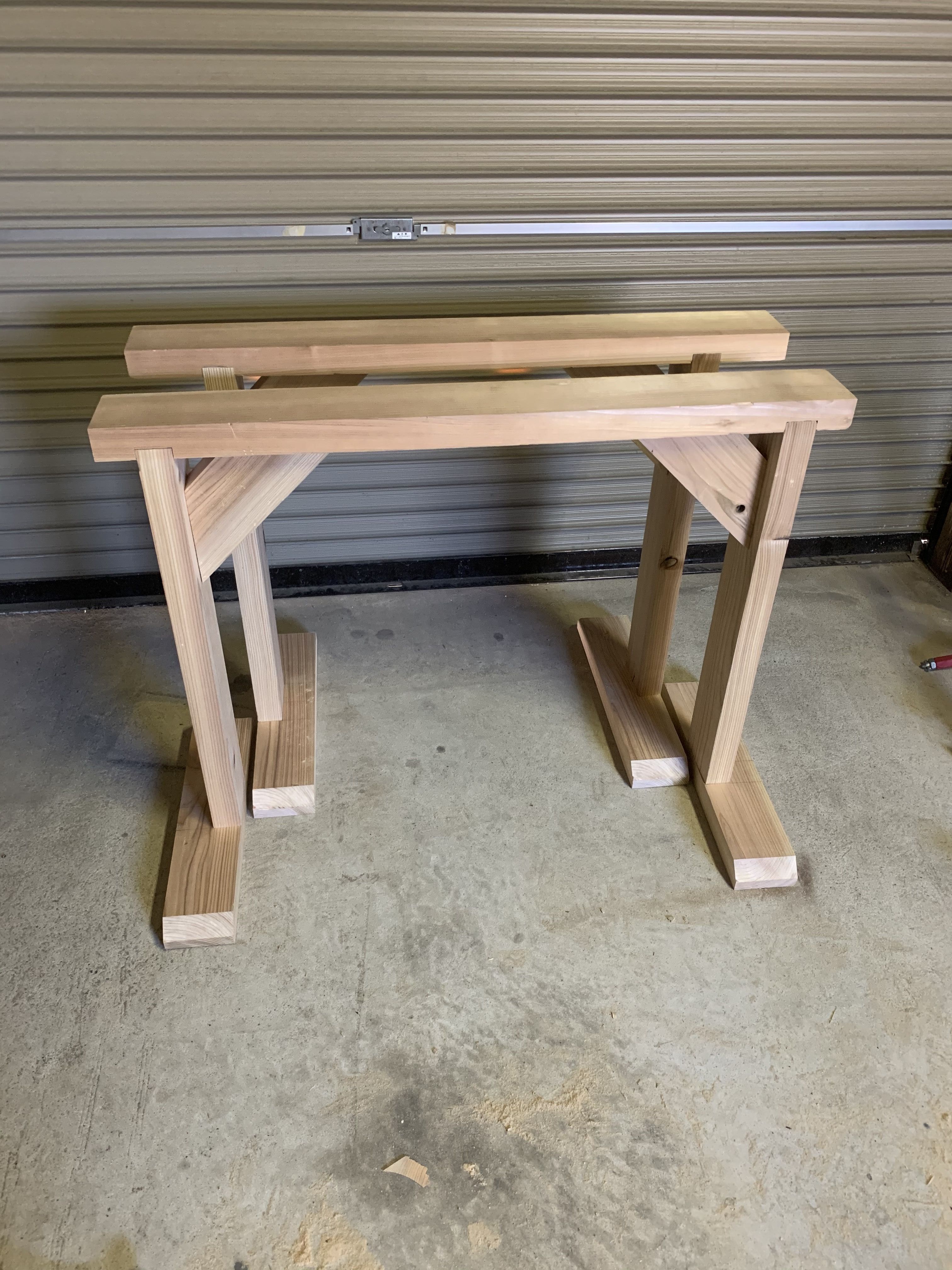 DIYの神器の丸鋸がやって来ましたさっそく盆栽棚を作ってみようと思います材料は45mm厚の板です。これは階段の板で使っていましたが家をリフォームする前の板が何故か家に保管されていましたこれを切ったり貼ったりして簡単な棚を作ってみたいと思います。とりあえず物をのせる面の裏側に台になる板をはめ込みたいので溝を作りましたじいちゃんの代から伝わるノミを使い細く切ったところを削りましたこれを2枚作り台の板を長さを合わせて切りはめ込むと形になりました本当は台になる板とのせる板はきっちりハマり込む予定でしたが45mmで溝を切ったつもりが見事に48mmになってしまいました丸鋸の歯の厚さが計算に入っていませんでした。おかげでグラグラしましたが板が厚いので頼りない感じはなく最初からネジ釘を打ち込む予定だったのでネジ釘で解決しました家の外壁に塗る塗料があったので塗りました完成しましたもっとかっこよく作るには材料を調達してこなくてはいけませんねそれは次の機会に考えます。両端のプランターはモミジアオイという花で名前の割に南国的な花です初めての丸鋸は思ったより精度を出して切るのは難しいですねインパクトドライバーと丸鋸さえあればだいたいの木を使った作業は出来ると思います丸鋸は座り込んだ体勢で使うとあまり良くないらしいので今度は丸鋸を使う時の作業台を作る事にします。やっぱり回転系電動工具は怖いです。ジャックみたいにケガしても治ればよいのですが指切断したとか想像するとチビリそうになります