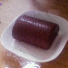 今朝届いた「スイートますや」のたまごチョコロール、解凍できました。かぶりつくには大きいので、ちゃんと切って食べよう!!