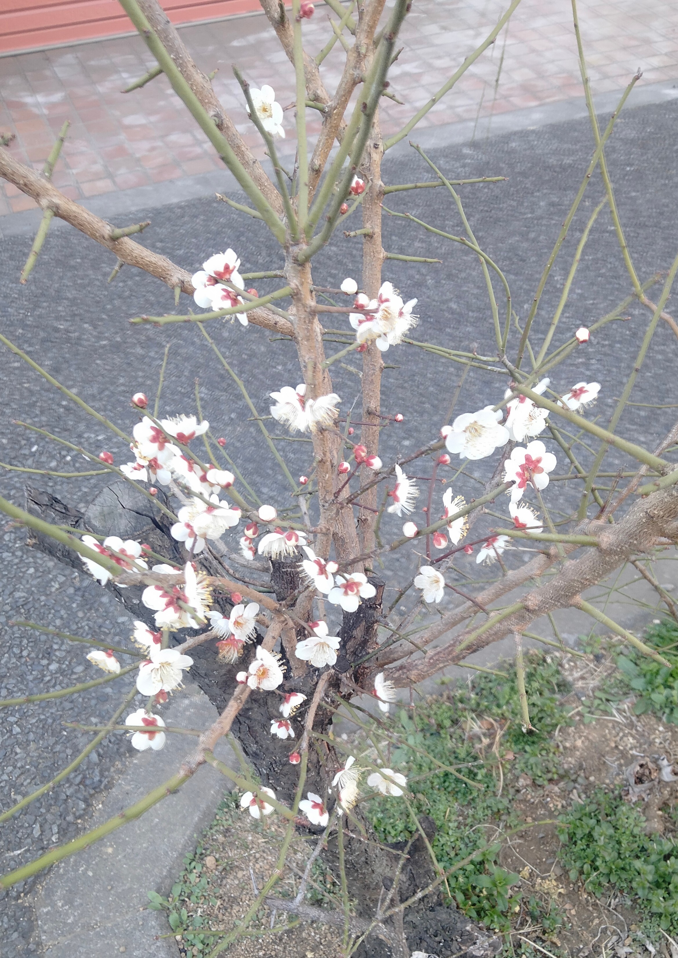 道端の梅こんな小さな木からでもしっかり健気に綺麗に咲いてるのを見て勇気付けられました