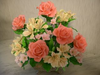 注文をただいていたパンフラワー(粘土)の作品がやっとやっとできあがりました(何ヶ月かかったかな~)まきバラ・アルストロメリア・フリージアをつくりましたピンクのバラを中心になるべく明るく華やかな感じで・・・というご希望だったのでかなり派手派手な仕上がりになりましたお届けの準備をしていると・・ミル:「あれ?今日はニャンコフラワー教室の日だったっかニャ??」ミル:「クンクン・・あれ?このお花においがしないニャ。ママがお仕事で作っている粘土のお花だ!!」ここでサービスショットちびミルがお仕事のジャマをしています!!ちっちゃくてかわいかったな~