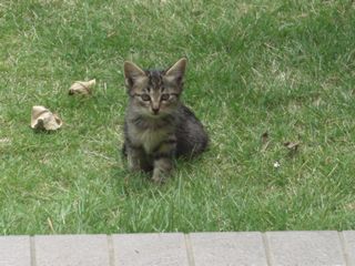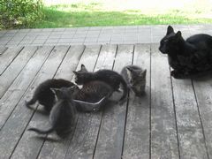 我が家のデッキにお住まいの黒猫親子寒さに負けず、みんな元気に成長しています食欲も半端ではありません たっぷりあげても あっというまに完食~ ママのおっぱいだけだった頃に比べてみんなコロコロに太ってきました 先週まではデッキの上でだけ遊んでいたのが今はお庭の探検に夢中行動範囲が広がると危険もふえるので ちょっと心配なんですが・・おとといも朝ご飯のときの点呼にチビが5匹しかいない!!あわててさがしていたら駐車場のほうから「ピーピー」と子猫のなき声が・・黒ママもそのなき声に気がつき 走ってきて無事発見そろそろ里親のことも考えなくてはいけない時期ですね