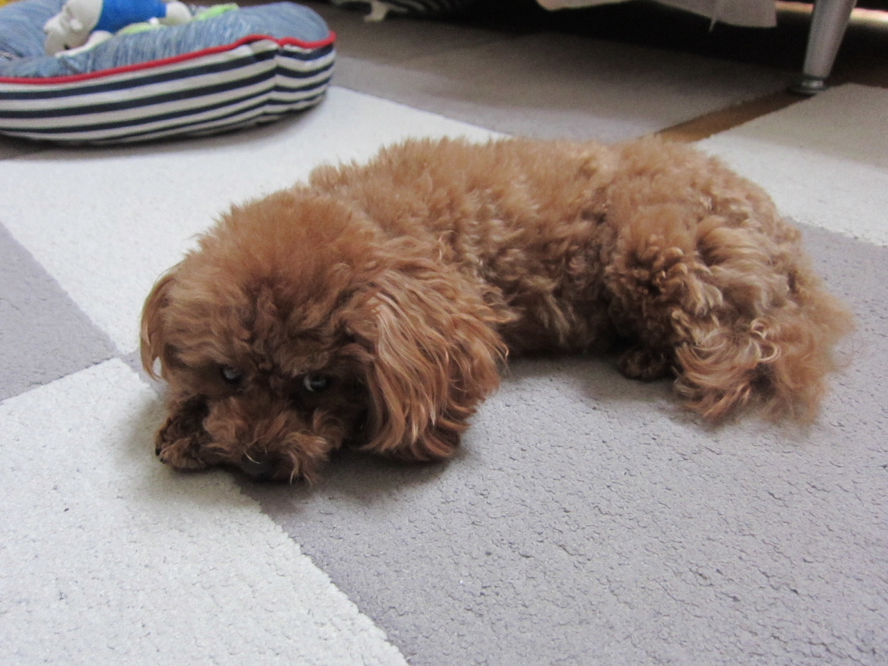 もも:あーあ、雨の日はヒマですわん。お外に出るのはイヤわんから、寝るだけですわん。