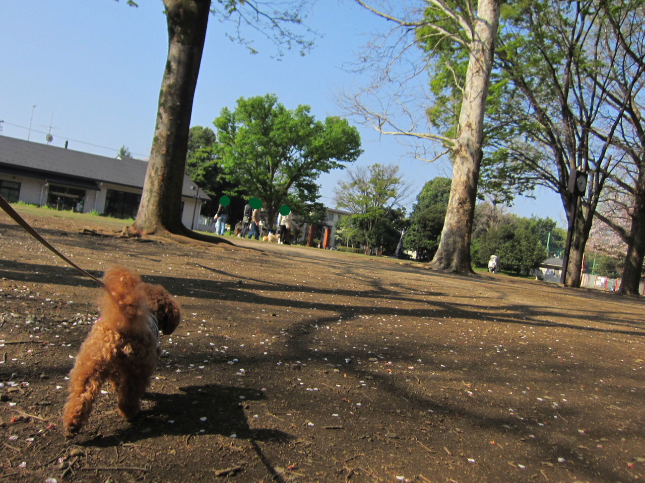 公園に到着して、広場に向かうももをパチリ。近所のお散歩の時に比べると、嬉しい気持が多めになっているみたいで、元気いっぱいです。笑