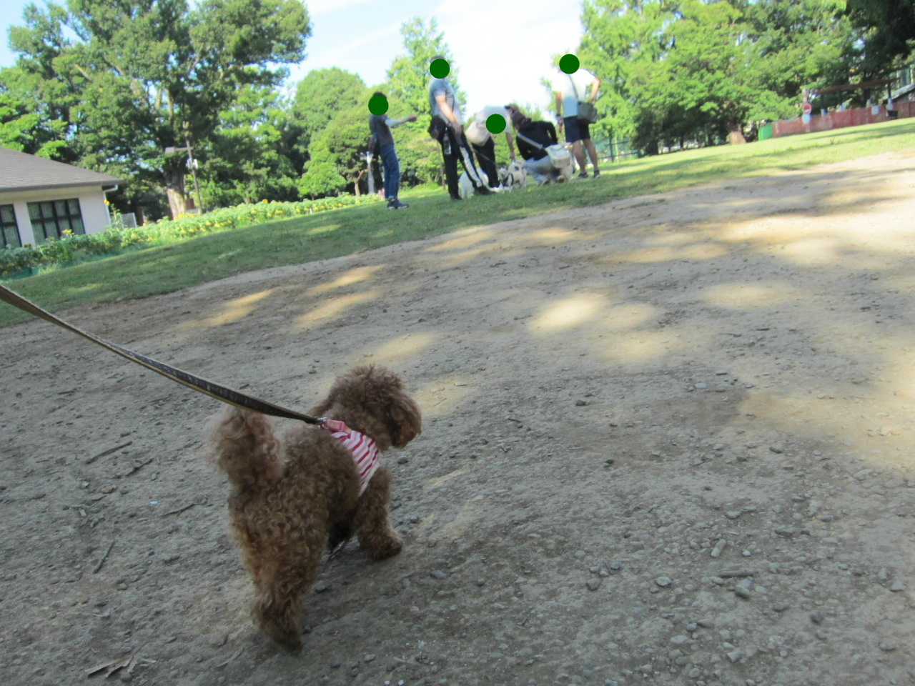 公園に到着直後、先に来ていたわんこたちにご挨拶するももをパチリ。