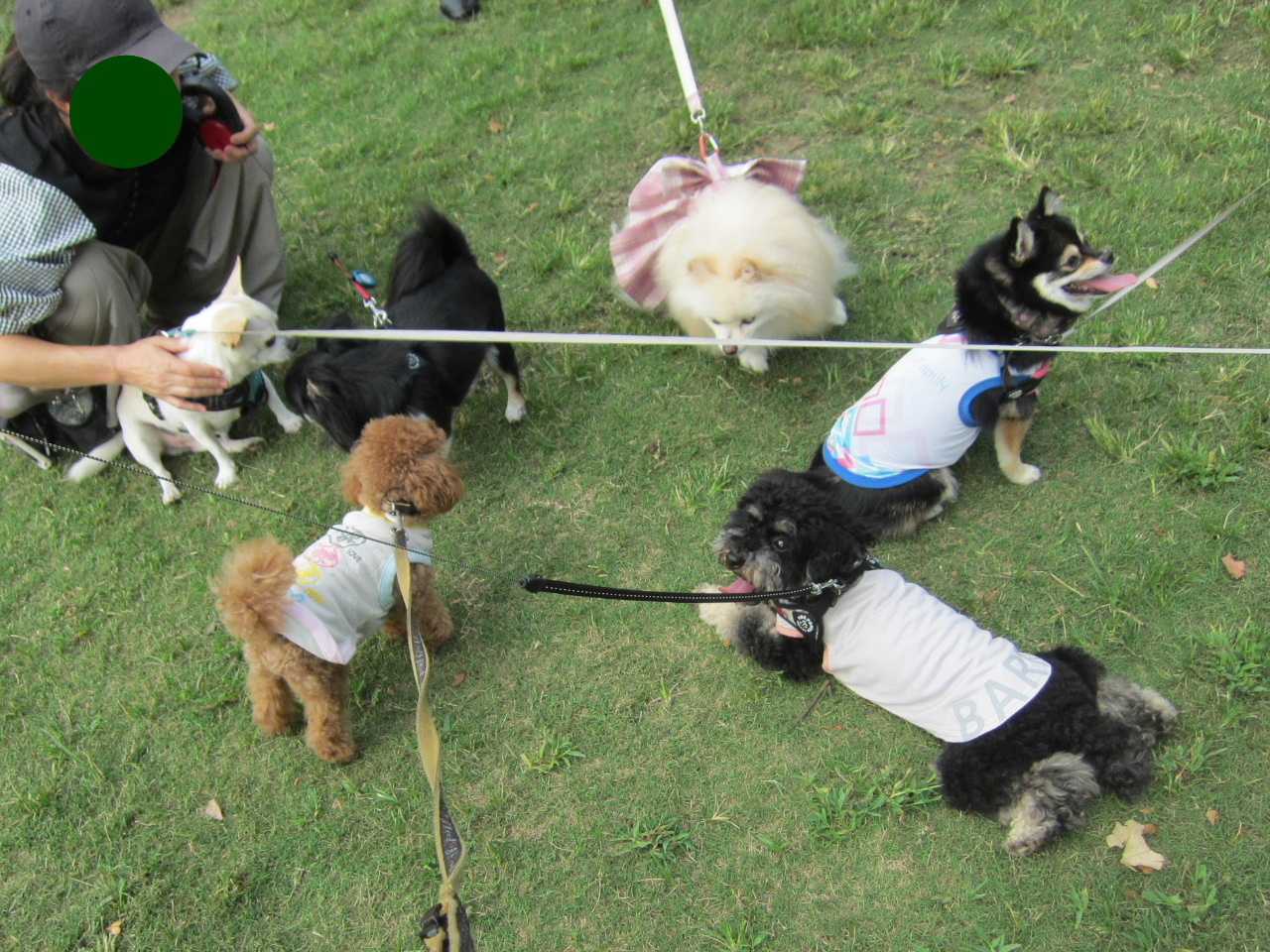 日曜朝、公園到着後、広場に行ってうきうきしているももに、お子ちゃまっぽいわんこが近づいてきたところです。お子ちゃまっぽいけど、体はももの何倍も大きいです。