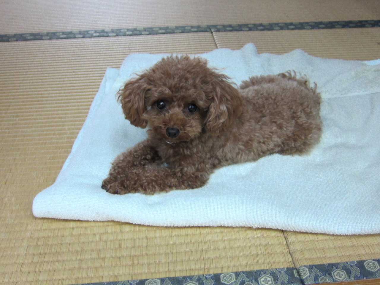 もも:ふかふかですわん。パパのニオイがとれて、いいタオルケットになりましたわん。