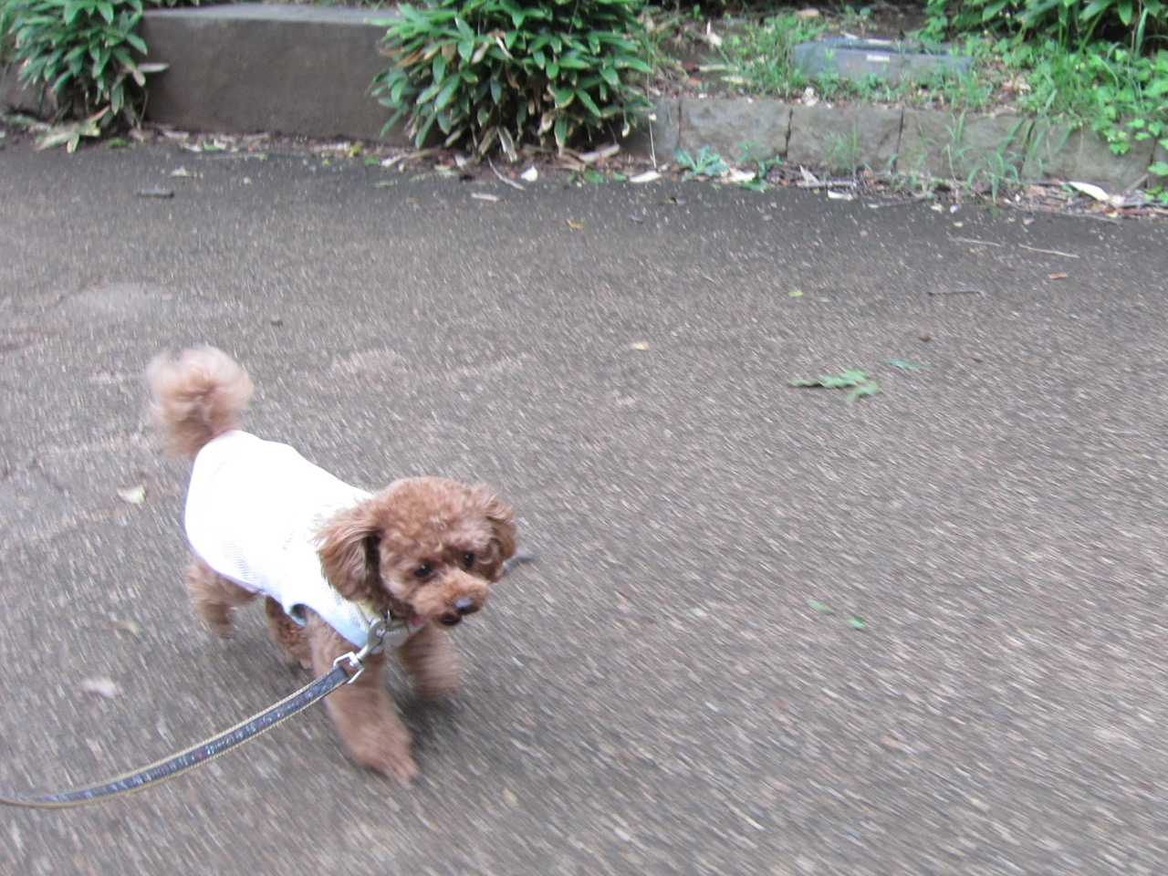 月曜の夕方の公園に到着したももをパチリ。一日ずっとお家で待っていて、やっと公園で遊ぶ時間がやってきました。ももはうれしそうです。もも:みんなー、あたちが来たわんよー!今日も楽しく過ごすわんよー!夕方の公園には、いつも同じベンチに座ってわんこたちにおやつをくれるおじさんがいます。わんこたちは、そのおじさんからおやつを頂くのが大好きです。一度もらった後、もう一回おじさんのもとに行きたがるももをパチリ。おやつを食べすぎると良くないので、リードを引っ張ってももを行かせないようにしています。もも:パパ、止めないでくださいわん。わんこには、行かねばならない時があるのですわん!パパ:それはきっと今じゃないぞ(--;)。金曜日です。台風接近で、雨が降ったりやんだりでした。夕方、晴れ間を見て少しお散歩をしたところです。このもじゃもじゃが、翌日のトリミングでさっぱりする予定です。もも:ここは道ですわん。公園に行きたいわん。パパ:雨なんだから、公園には行かないぞ。以上、ももの平日日記でした。もものお留守番 (1時間を超えるお留守番)7/31(Thu) 11:30-19:15(8.75H)8/01(Fri) 18:30-23:00(4.5H)