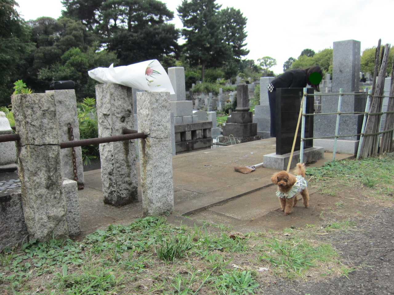 土曜日にモカママの実家のお墓参りに行きました。なかなかお参りに行けず、ももは1年半ぶりの2度目のお墓参りです。お墓のお掃除中は、柵にリードをつないでおきました。もも:パパが桶をもって、どこかに行きますわん。怪しいわん。パパ:水を汲んでくるだけだぞ(--;)。お参りが終わって、お墓の前でパチリ。もも:こんなに待たされたのに、手を合わせただけですわん。よくわかりませんわん。お墓から車へ戻るところです。めずらしくモカママがリードを持ちました。ももの都合なんて関係なしに歩くので、いつもと勝手が違ってももは歩きにくそうです。笑もも:ママは自分勝手ですわん。困りますわん。パパ:いつもはももが自分勝手なんだぞ。笑日曜日の午後、お家の前に出たところカマキリがいました。ももは興味津々にカマキリにちょっかいを出します。よく見ると、カマキリはケガをしていて、飛べないようでした。ケガがひどくなるとかわいそうだから、ももを離しました。ももはとても名残惜しそうでした。もも:これはなにわん?ちょろちょろして興味深いわん。以上、ももの週末日記でした。