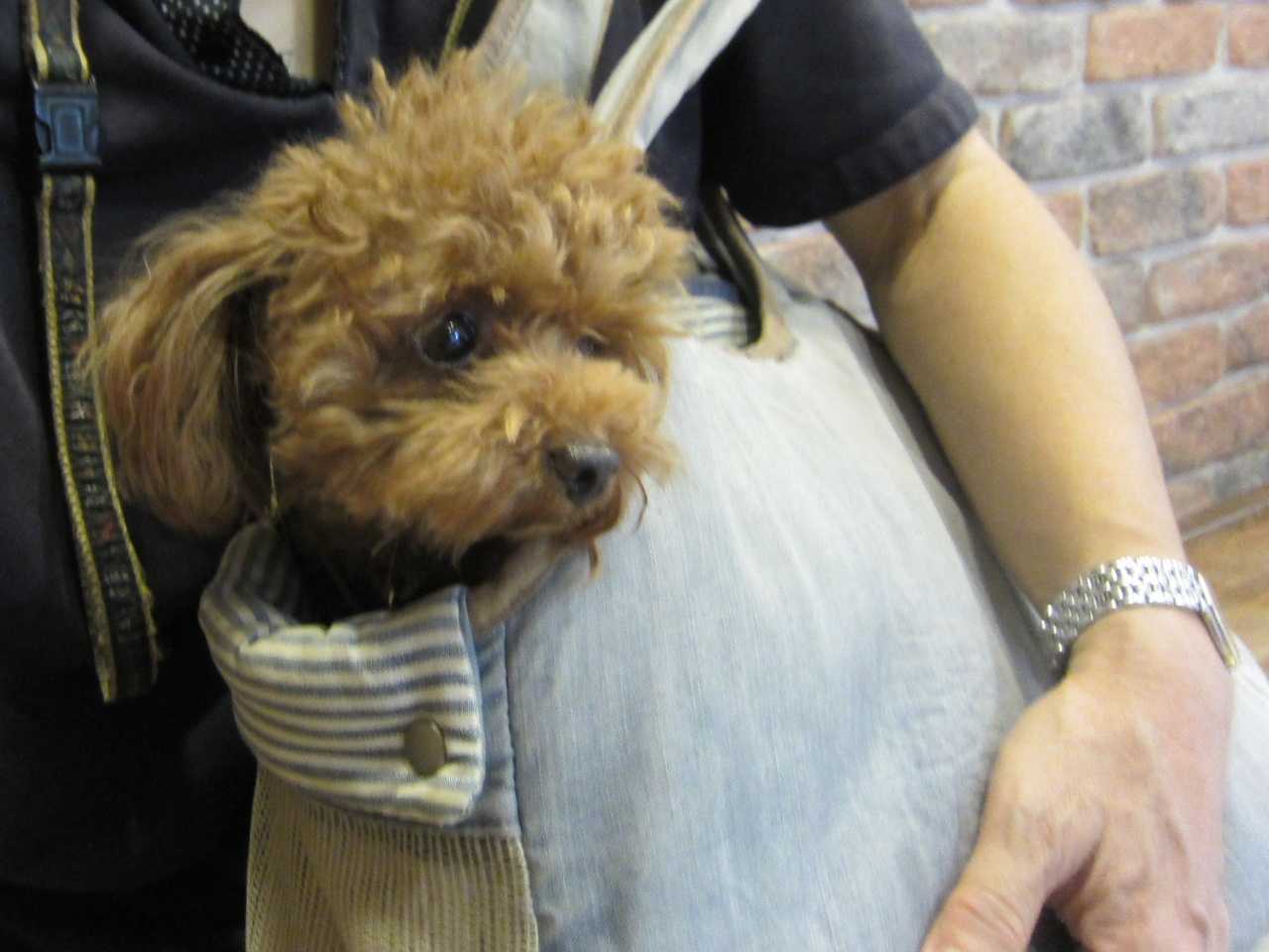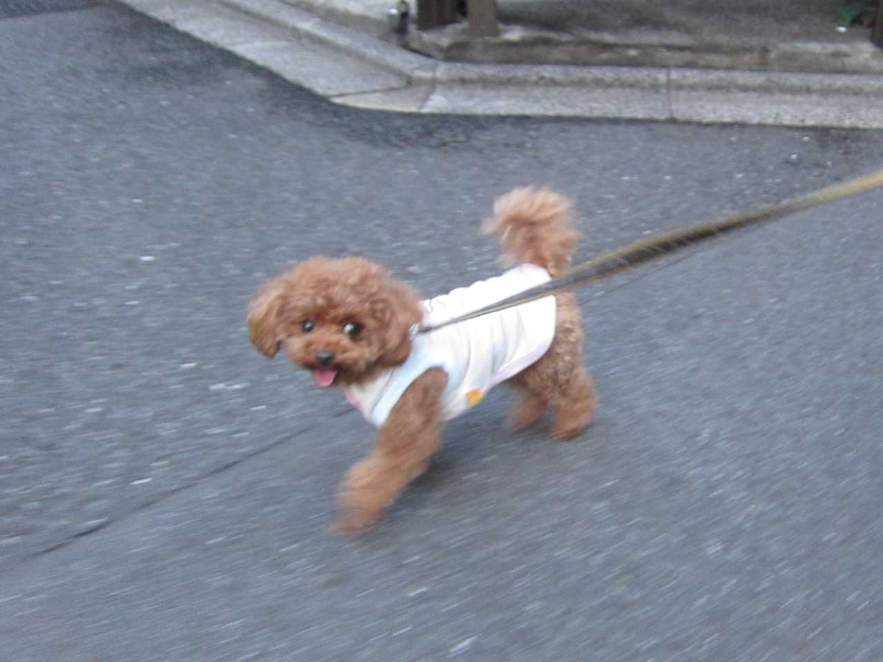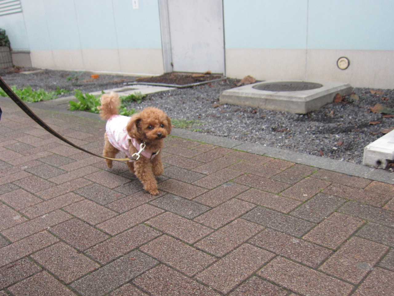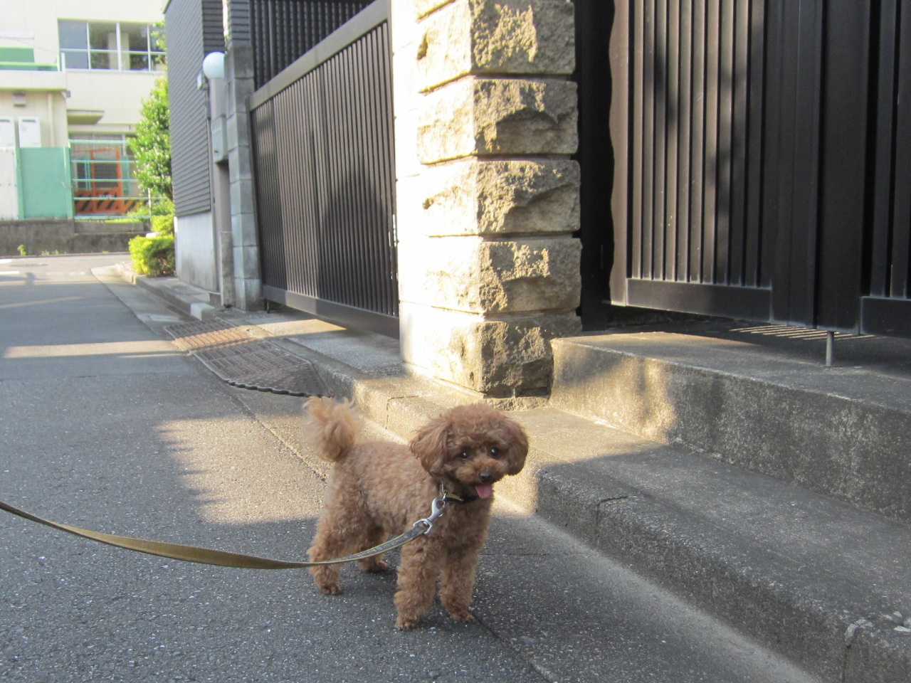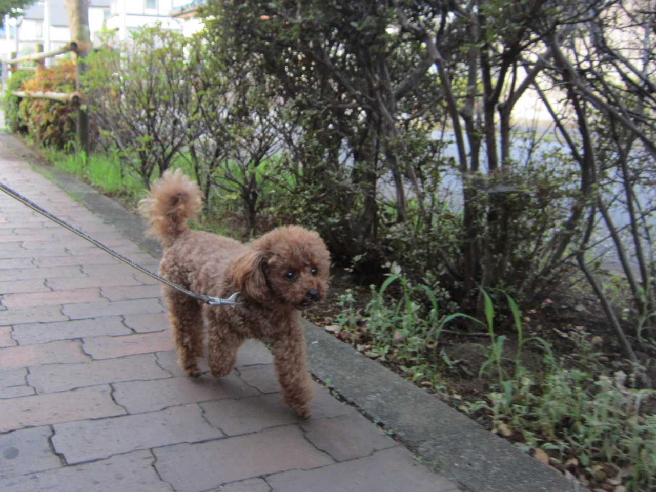 土曜の朝イチはトリミングでした。やっとサッパリできたももをお迎えに行くと、お尻の肛門腺がかなり膨れているとのトリマーさんのお話。そのまま、お医者様の診察を受けました。待合室でももをパチリ。かわいくカットされて、目の前が見えるようになりました。もも:トリミング疲れましたわん。診察では、肛門腺がたくさん溜まって破れかけているとのこと。お尻を少し切って、そこから出してもらいました。トリミングの予約が取れなくて間が2か月以上空いたことが原因になるのですけど、去年はちっとも肛門腺が溜まらなくて、不思議に思ってお医者様に相談したこともあるのに、いきなり溜まりすぎだなんて、いろいろ大変なももです。お家に帰ってももをパチリ。トリミング後のオスワリした姿を撮りたかったのですけど、ももはケージに引きこもって出てきません。切ったお尻が気になって、あまり動く気になれないようでした。もも: ・・・・・ひどいわん。とほほな気持ちですわん。翌朝の朝ごはんを境に、ももの元気が戻りました。朝はしっかりお散歩して、夕方も公園でたっぷり遊んできました。元気になってよかったです。写真は朝のお散歩です。もも:昨日はひどい目にあいましたわん。気を取り直して、今日からまた元気にいきますわん!以上、ももの週末日記でした。