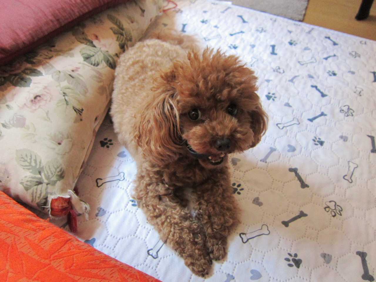 この週も、公園に行けるときは、お散歩代わりに行ってました。これは火曜朝の公園到着直後のももです。楽しそうです。もも:今日も来ましたわん。楽しみますわん。このところしばらくの間、もものベッドはおもちゃ入れになっていました。最初のころはベッドとして使っていましたけど、おもちゃを入れておく場所がなくて、ベッドに入れ始めたらだんだんとおもちゃ入れになっていたのでした。モカママがおもちゃ入れを別に用意して、再びベッドとして使えるようになりました。ももは早速ベッドで寝てました。笑もも:ベッドですわん。いい気分ですわん。もも、良かったな。以上、ももの平日日記でした。もものお留守番 (1時間を超えるお留守番)8/13(Wed) 9:00-17:15(8.25H)