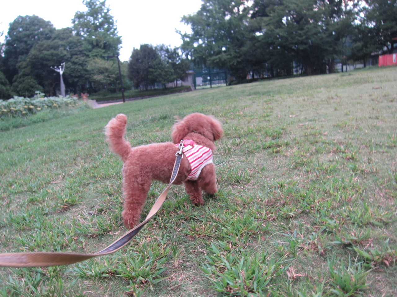 2か月ぶりです。やっと土曜にトリミングの予約日が来ました。ももはさっぱりしました。もも:きれいになりましたわん。おやつくださいわん。トリミングだった土曜の朝以外は、いつも通り朝と夕方は公園で過ごしました。日曜の夕方に公園に到着したももをパチリ。暑いので、日中はお家でグーグー寝るしかない毎日です。やっと夕方のお楽しみ時間が来たので、やる気満々のいい顔しています。もも:やっと夕方ですわん。楽しく過ごすわんよ――――!以上、ももの週末日記でした。もものお留守番 (1時間を超えるお留守番)8/2(Sat) 11:45-13:30(1.75H)