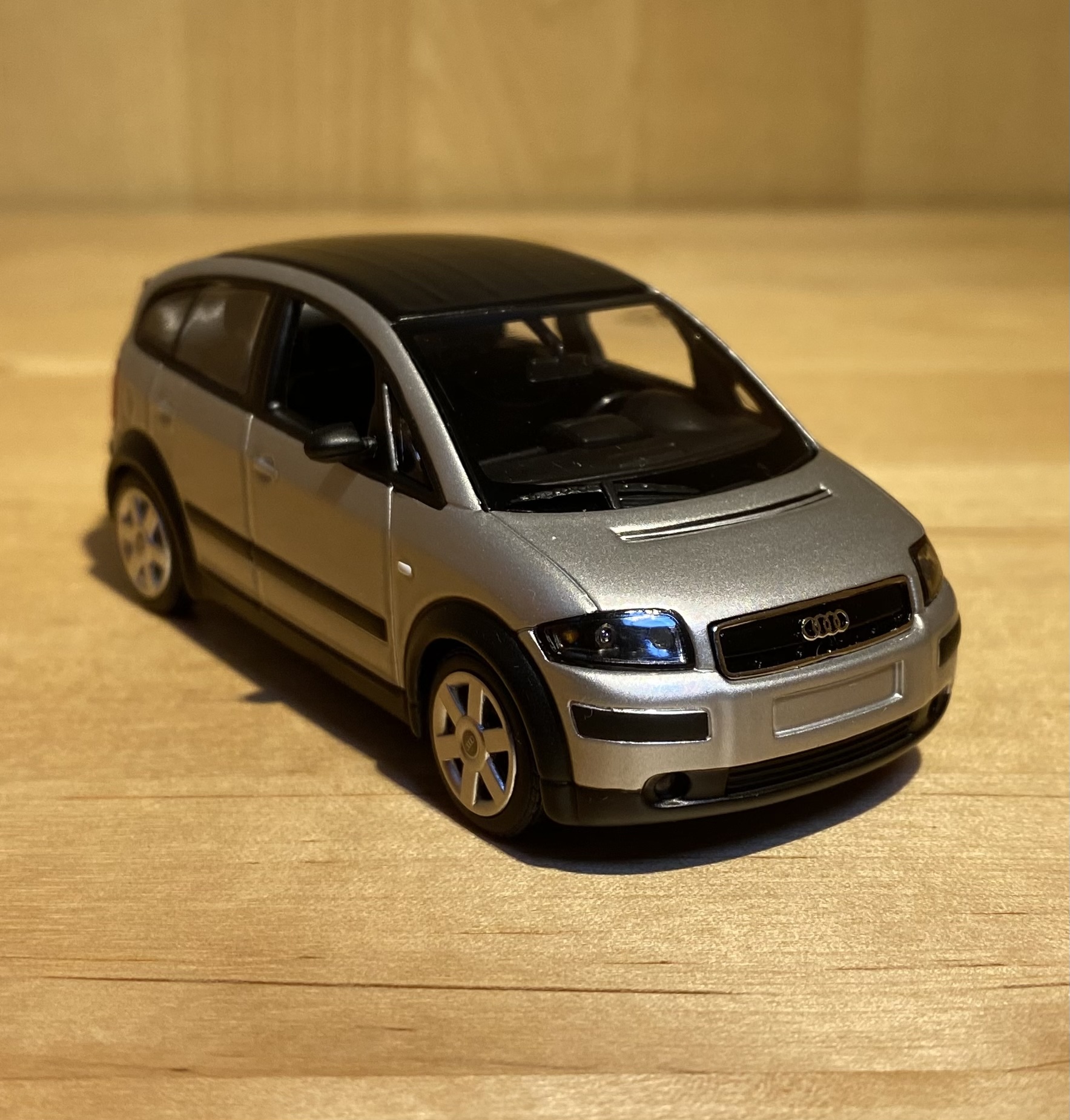 こんにちは!今回の記事では少し変わった車を紹介します!1990年代後半、メルセデスベンツは初代Aクラスを発表しました。この初代Aクラスは現在販売されているような洗練されたハッチバックではなく、まるでおにぎりに車輪がついたような変わった車でした。横風に弱いなどと話題になった車なので、印象に残っている方も多いのではないでしょうか。これはかなりのヒット作となり、なんとAMGバージョンまで作られたといいます。このAクラスに対抗する車をアウディが生産したことはご存知でしょうか。それが今回ご紹介するA2です。ミニチャンプス 1/43 アウディ A2 2000 シルバー マキシチャンプス コレクションMinichamps 1:43 Audi A2 2000 silver Maxichamps CollectionこのA2は日本には正規輸入されることがなかったため、あまり馴染みのない車種かもしれません。ヨーロッパでもあまり販売は芳しくなかったため、そこまでたくさん走っているわけではありません。私も実車を見たのはヨーロッパ旅行中の数回だけです。A2には随所に当時最先端の技術が詰め込まれています。ボディはオールアルミニウムでアルミスペースフレームを採用しています。そのため、重量はライバルであるAクラスよりも200kg以上も軽くなっています。A2の平均的な重量は830kgほどということなので、かなり重量の削減には力を入れていたことが伺えます。また、タイヤも路面との抵抗を抑えるためにわざわざ専用のものを装着しています。中には100km を3Lの燃料で走行できる車(3Lカー)として開発されたグレードも存在していました。確かにフロントを見るとフロントグリルが埋められ、ルーフラインもクーペのような流線型になっているなど、かなり空力を意識したデザインになっています。ただ、これらの最先端の技術は当然A2の価格を押し上げることになりました。ライバルよりも高価だったA2のセールスは芳しくなく、Aクラスが100万台ほど売り上げたのに対し、A2の生産台数は17万6千台ほどにとどまりました。ただ、A2自体のセールスは良くなかったとはいえ、この車の開発を通して得た軽量化や空力に関する知見はおそらく現在のアウディ車にも活き続けていると思います。他にも様々な変わった車のミニカーを紹介していきます。次回もお楽しみに!