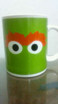 うふふ。 セサミストリート好きなんですよね。 ゴミ箱のオスカーです。 ひねくれ者なとこがたまらんです。 このモンスターは比較的まともなこと言うと思いますが。 クッキーモンスターも好き。彼のクッキーは粉々になりやすい特別製って知ってました? 取っ手にも顔がついててがわぃぃ~(≧▼≦)!