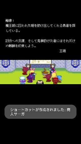 おはこんばんちは! 玉集めは残念な結果だったもふ月です。 あれ50000とかどうやって集めてるの…極の子がもっと育ってて超難周回できるくらいでないと話にならないのか… それとも運が悪くて敵札ばっかりだったのが原因か… 修行道具も集まらなくて悲しいので、久々に他のアプリも入れてみました。 商人サーガ です! おすすめ閲覧してる時に、評価に『タップゲーだね』ってあったのでちょっと気になり始めてみました。 プロローグから始まります。 主人公が商人のおっさんです。 強欲…もとい商魂逞しいおっさんです。 おっさんは商人なので戦えません。 (それでも一度戦いに行こうとはしてるので勇気があるというか無謀というか) 色々あって魔王城にお店を開いてしまうというおっさん。 敵を倒していきフロアを獲得したらお店を開けます。 人材派遣、武器と道具屋が最初に開いていて、少し進めると伝説の道具屋が開店。 稼いだお金で戦士達や売り物をレベルアップしていく… という流れの様です。 時々王様が援助をしてくれます。 フロアを進めていたけど1Fに戻されるのですが、強くてニューゲームというやつですかね。 やり直したら次が進めやすくなるという。 (スクショ撮ろうとしましたが、撮るタイミングで広告が出るようになっている様で…広告ばかり撮影してしまった…悔しい) 放置していても一応稼いではくれます。 タップしたら早く稼げるよ!という感じでした。 一番最初だけ少しタップして、強化→その後は放置して時々強化…という流れで大丈夫そうです。 ドット絵が可愛い。 進めてくと時々お話が出てくるようです。 称号もあるので、コンプリートしたい派には良いゲームかもしれません。 広告は少し多めです。 普通に進めてくには問題ないのですが、スクショがなかなか撮れない(撮られたくないの?ってくらいにタイミングよく広告出してくる。スクショが電源長押しからだからかもしれない…)のでそこがちょっと。 広告を見たらゲーム内通貨とかもらえるとこがあるにはあるんですが、それほどはもらえないので…地道に進めてく感じですね。