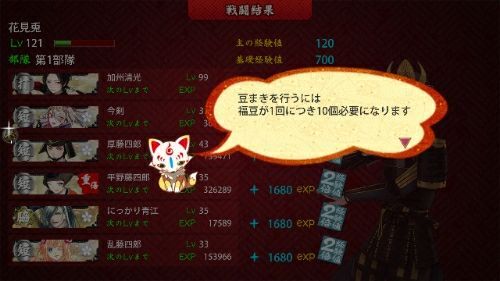 こんばんは、もふ月です。 インフルエンザ、流行ってますねぇ。 とうとううちの職場にもやってきてしまいました。代理出勤で予定が崩れる…(´・ω・`) へし切り長谷部見に博物館へ行こうかなって思ってたんですが、土日だと混むよなぁ…平日に休み欲しいなぁ…むむむ。 福岡市博物館が結構好きで、別に刀でない時にもちょこちょこ行ってるんですが…… 今年はへし切長谷部展示(他のも勿論展示されてるよ!)の後にリカちゃんが来てて、その後のも楽しそうなんですよ。もういっそ博物館の近くに住みたい。 何だかんだ病欠の人の代わりに働いてる内に終わってしまうんですけどね……はは…… さて、仕事の鬼になってる場合ではありませんね! なんと今年はまさかの、節分に因んでの新イベントが開催されてます!嬉しいですね新しいイベント! しかも報酬が何だかいつもと違う感じ…… 景趣が貰えるのはお正月とかにもありましたが、なんと今度の景趣には『豆を撒く』事ができるボタン付きだとか?! 面白そう絶対撒くわそんなん!まきまくるわ!!! 子どももいないのにテンション上がって節分豆買ってきましたよ私!やったね新システムありがとう!運営さんありがとう! 新しい景趣を入手する為には、どうやら特定の敵(多分強い)を150体倒さないといけないようです。 数で見ると超余裕じゃね…?て思うのですが、これって1周して1体倒せるもののなのか?150周すればクリアできるのか?? ちょっと要検証ですね。 楽だと良いんですが……… まぁ楽々新しいのを楽しませてくれる訳ではなさそう、というのが、 1回豆撒くのに10粒使うんですね。 そりゃそうか。現実的に考えても、豆まきする時に大豆一粒ずつ摘まんで撒く奴はそうそういないよな……一掴みずつ投げるものですしね。 えーっと、これはお正月の時みたいに一振りずつ誰かのリアクションが見れるとかそういう事なのかな…全員豆まいてくれるのかな…… だとすると結構な量の豆を……集めないといけませんね……ふふふふ周回の予感! 近侍と豆まき楽しみですねー(*´ω`*) 豆まきで思い浮かんだのが年の数だけ豆を食べて健康を願う、だったんですが。 年の数だけ豆を集めよう!でなくて良かったと思いました。刀の年齢分集めようとか鬼でも泣くわそんなん。 イベント期間は2/3、ではなく2/13までです。 バレンタイン前日まで、豆づくしの日々ですね! 花札 刀剣乱舞 —ONLINE— 花あそび D4 刀剣乱舞-ONLINE- ラバーストラップコレクション Vol.2 1BOX(8個入り) empty D4 刀剣乱舞-ONLINE- ラバーストラップコレクション Vol.1 1BOX(8個入り) empty