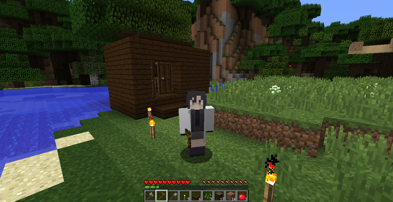 画面中央の右側にあるダークオークの木に仮小屋を建てる事にしました。