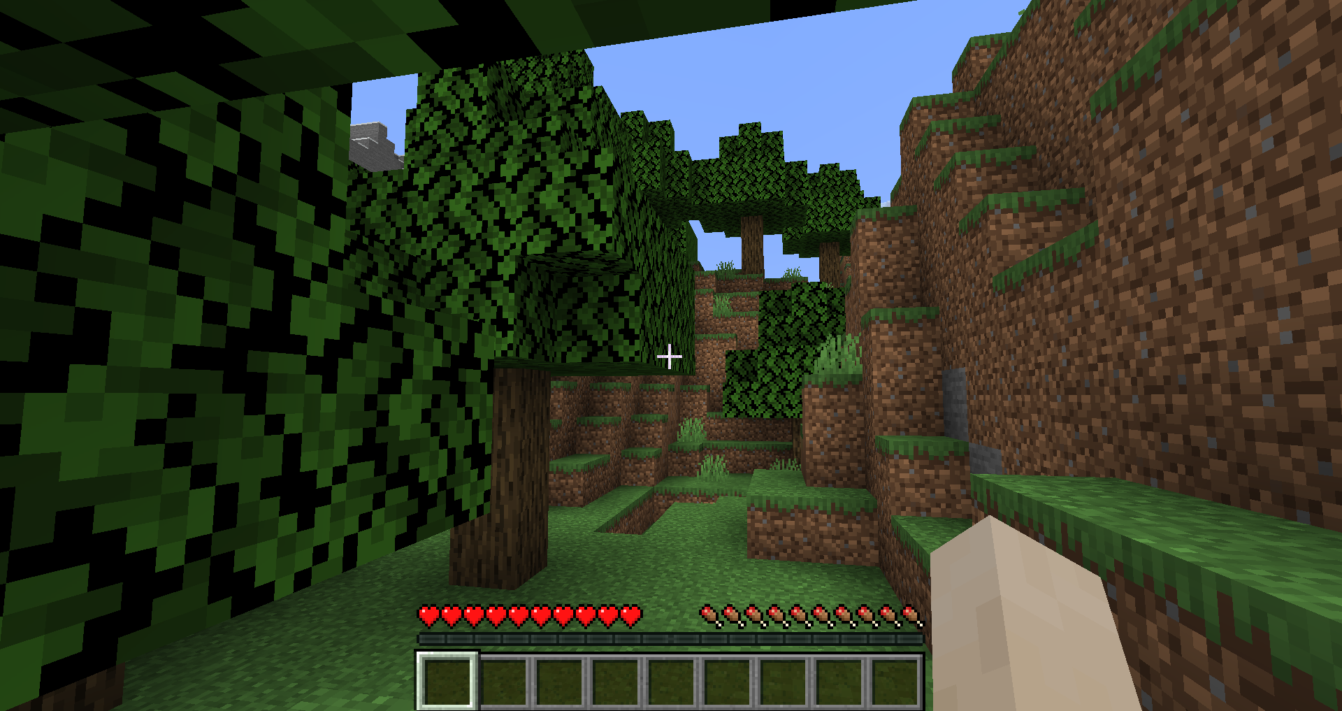 ワールド生成したてでまだ何も出てきていませんが、平原なら少なくとも牛や鶏、羊が出てきます。
