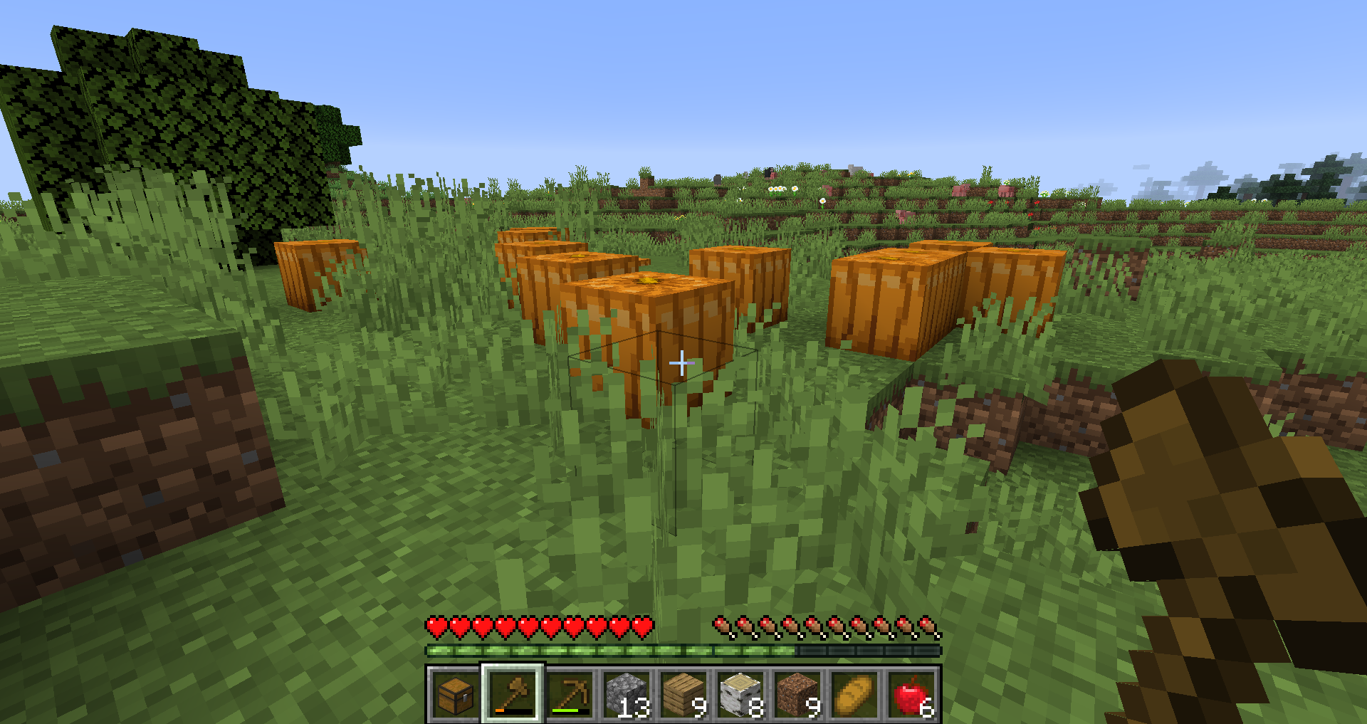 最初は松明で良いので、植林場等を整えてからにはなりますが、カボチャがあれば建築の幅が広がります。