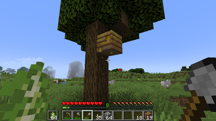 ②なら養蜂箱、焚火を置いて蜂を怒らせずにそっとハニカムを回収し作成、設置。