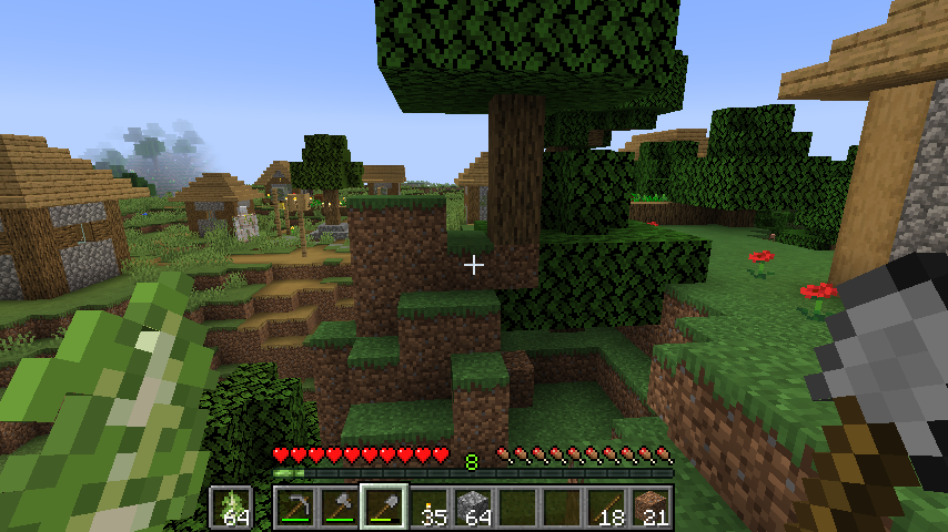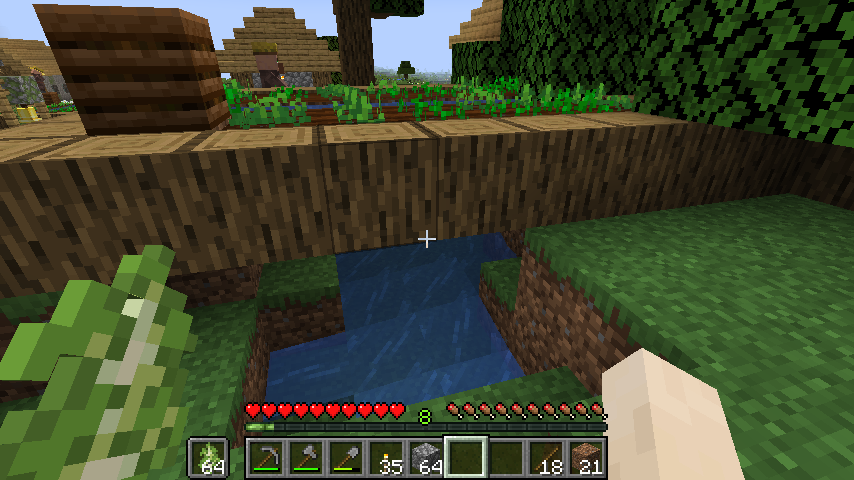 一応平原バイオームの村なのですが、丘がある場所に生成されているせいでかなり起伏があります。