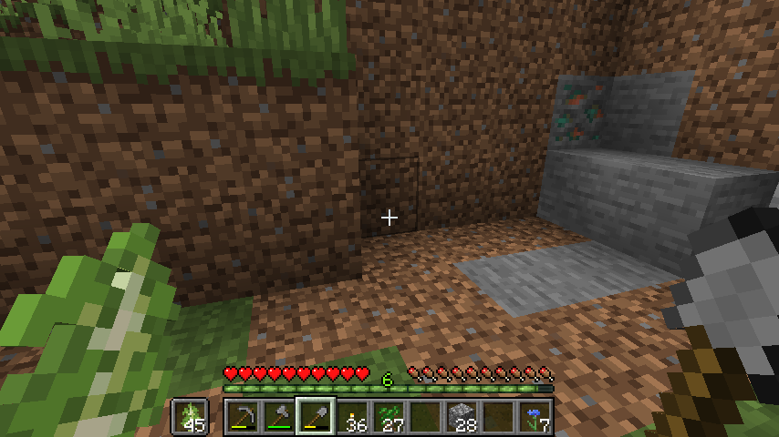 平原バイオームの部分も結構起伏大きめだったので、低い位置に合わせて整地していたら銅が出てきました。