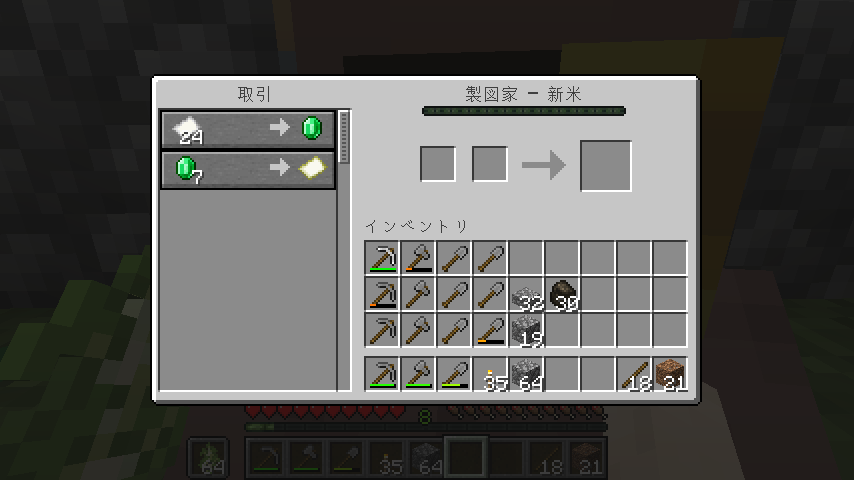 結構無職の村人もいるので、ゴーレムが3体もいる割にはあまり発展していない村の印象です。