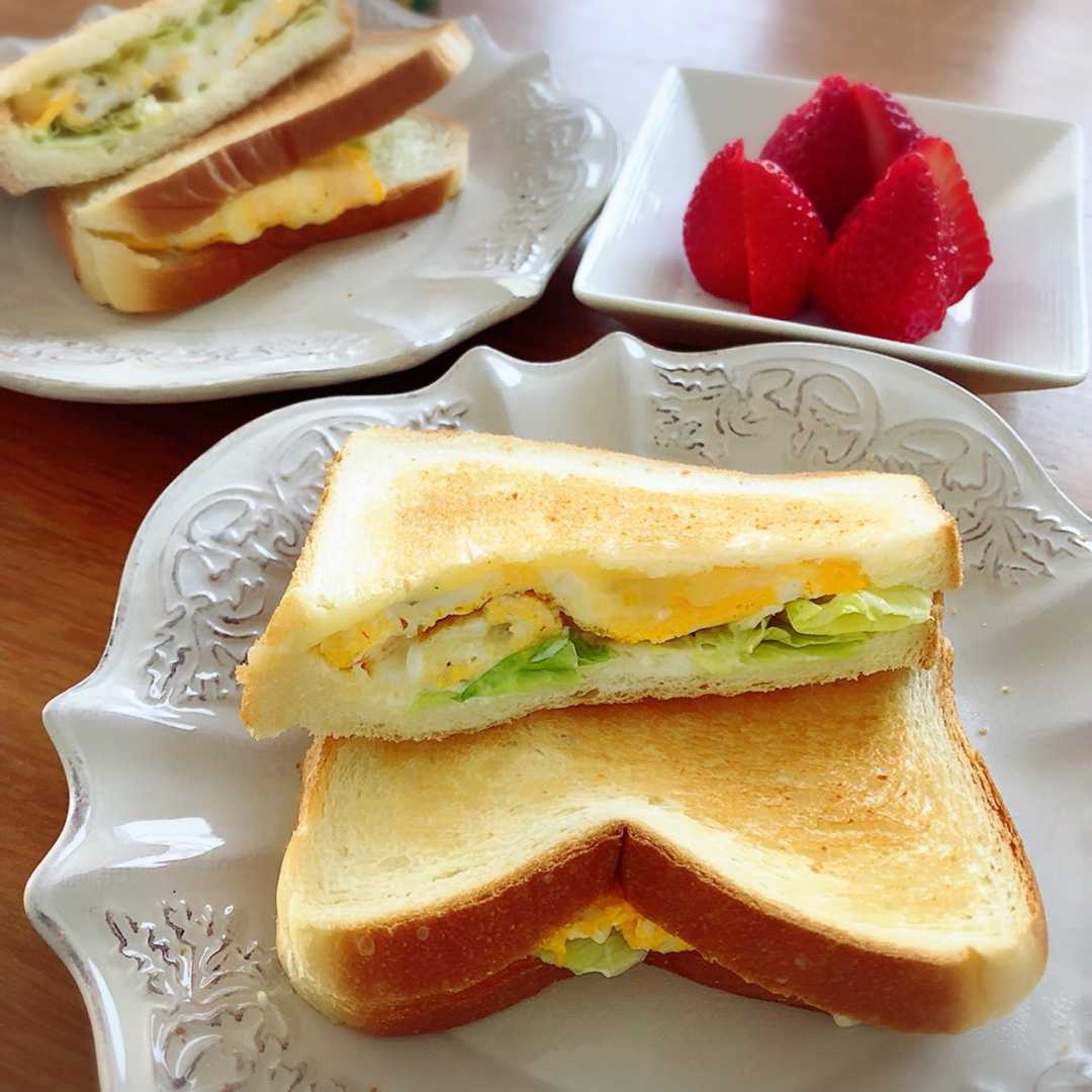 おはようございますありすです本日の休日の朝は下の娘と二人でだったので玉子サンド作って簡単に済ませました我が家の簡単朝ごはん食パンにのせるか挟むだけ!!今回は卵とチーズ・レタスを挟みました結構なボリュームでおなかいっぱいです(^^)/