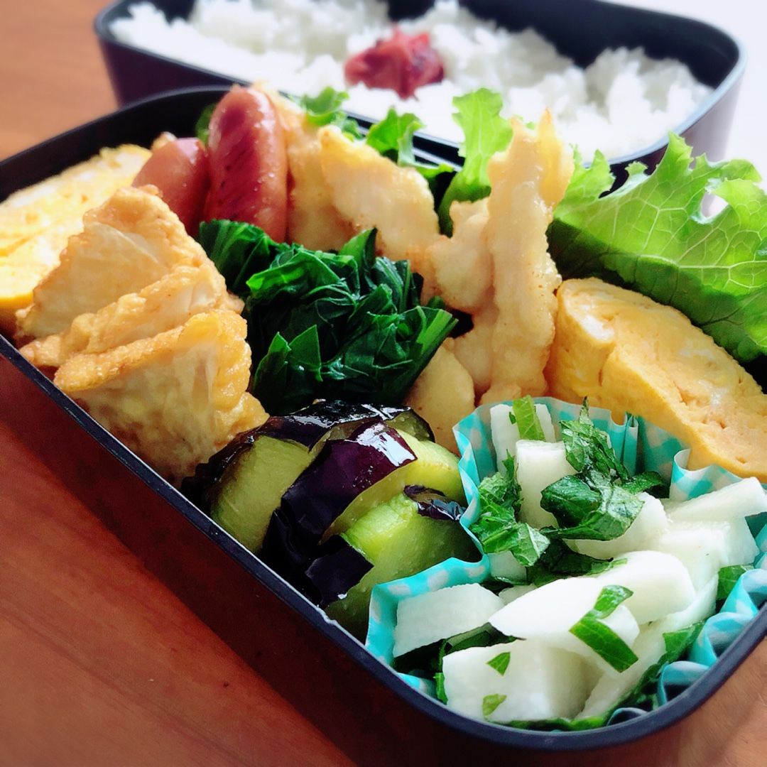 茄子の揚げ浸し、厚揚げの甘醤油焼き、ウィンナー