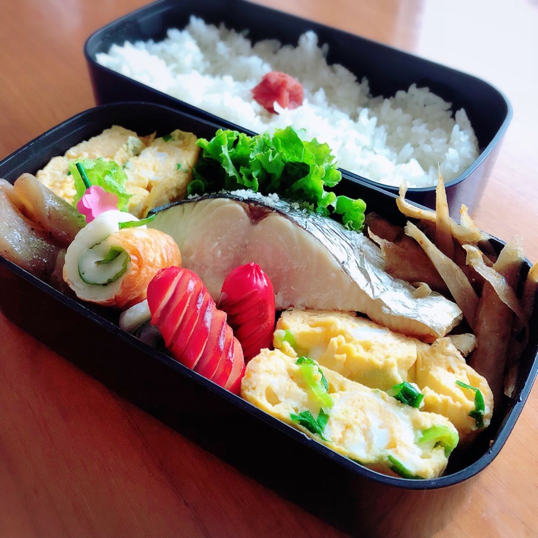 鰆の塩焼き、ねぎ入り玉子焼き、こんにゃくのピリ辛、