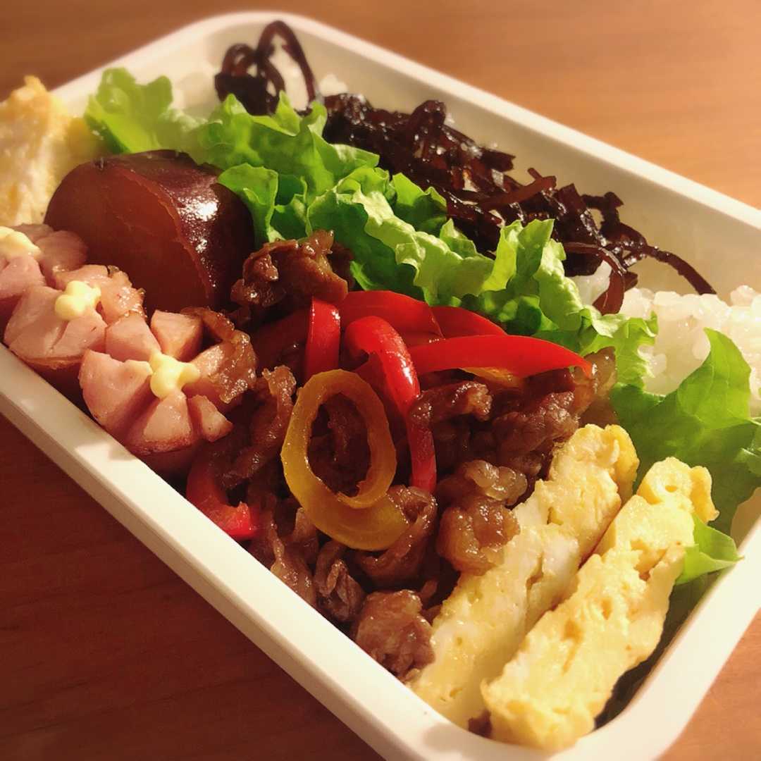 牛肉とパプリカの甘醤油炒め・玉子焼き・ウインナー