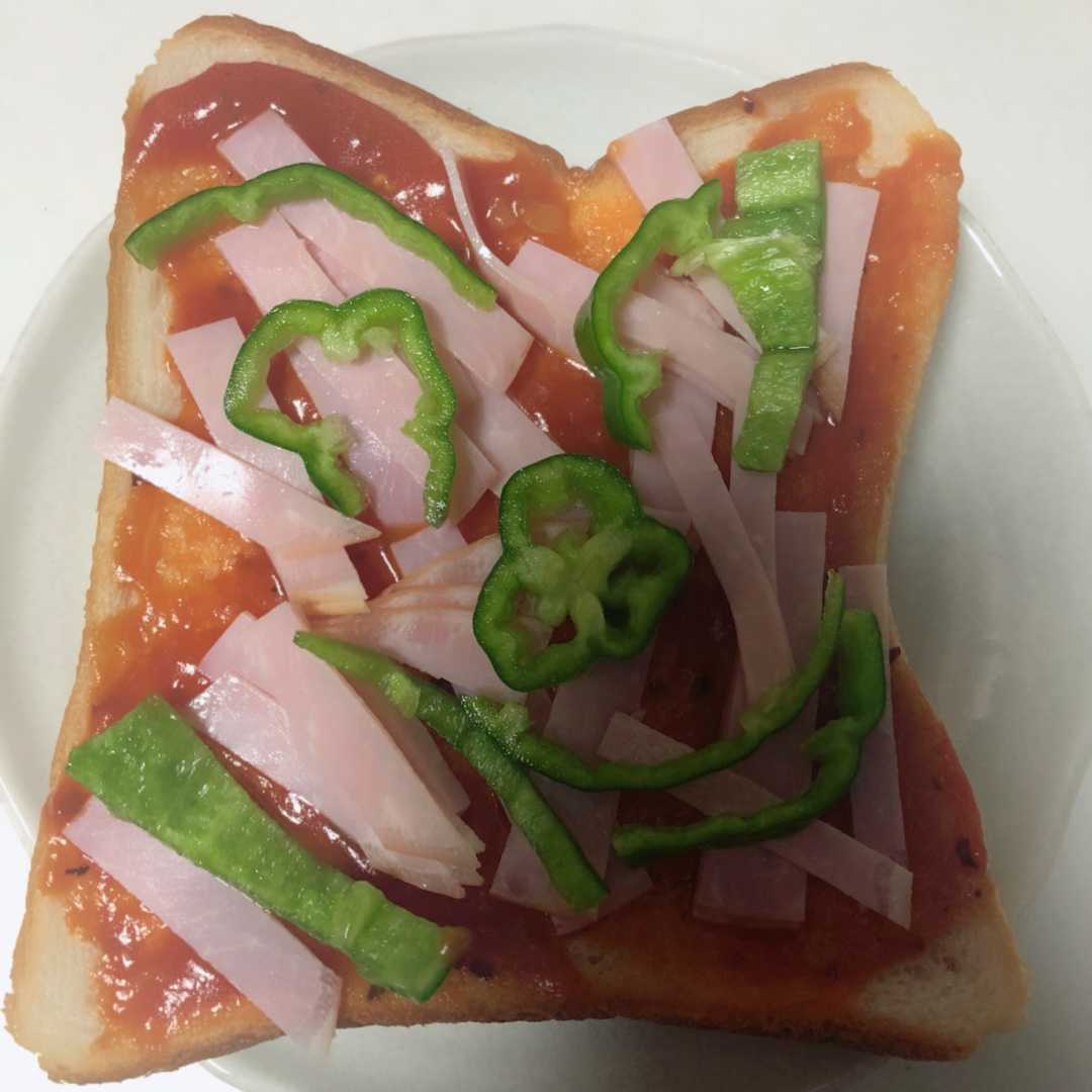 ピーマンとハムをトッピング