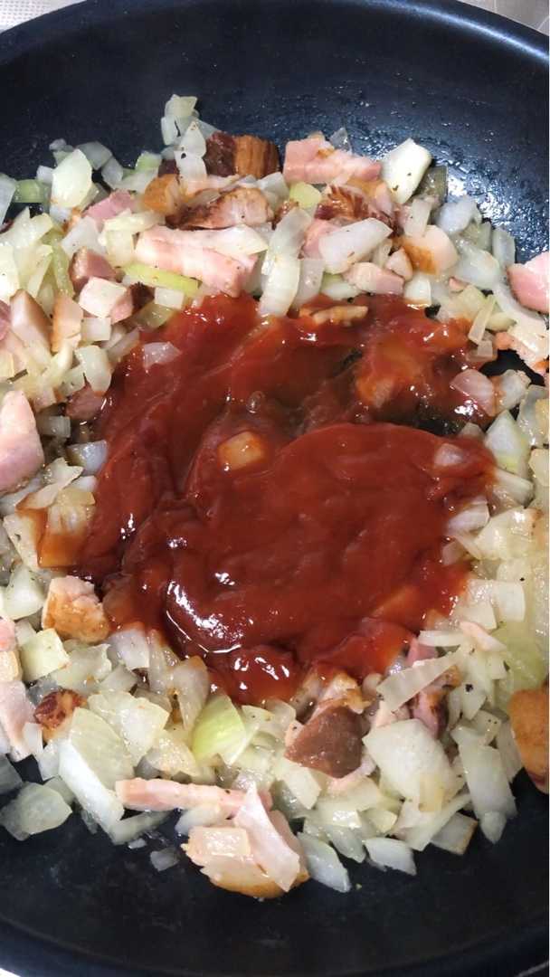 ケチャップとウスターソースを入れて