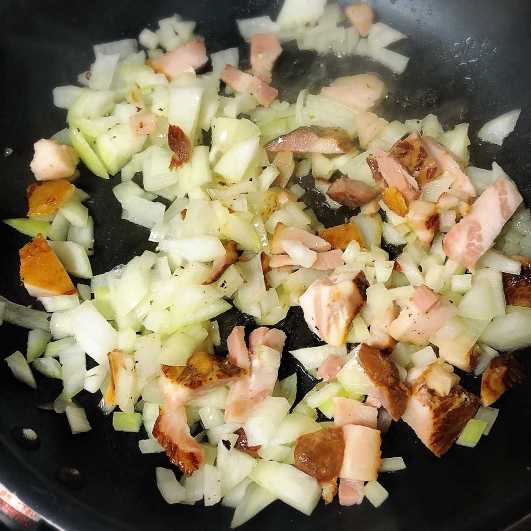 玉ねぎとブロックベーコンを使いました