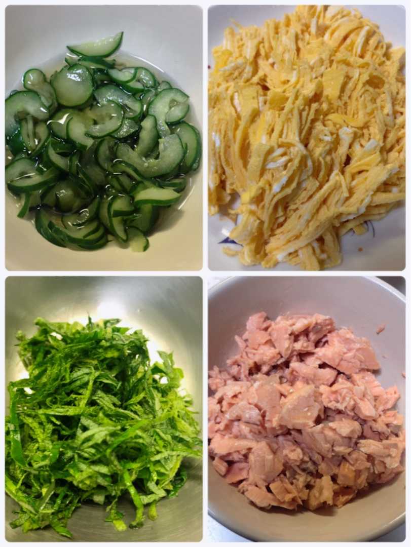 大葉は千切りにして