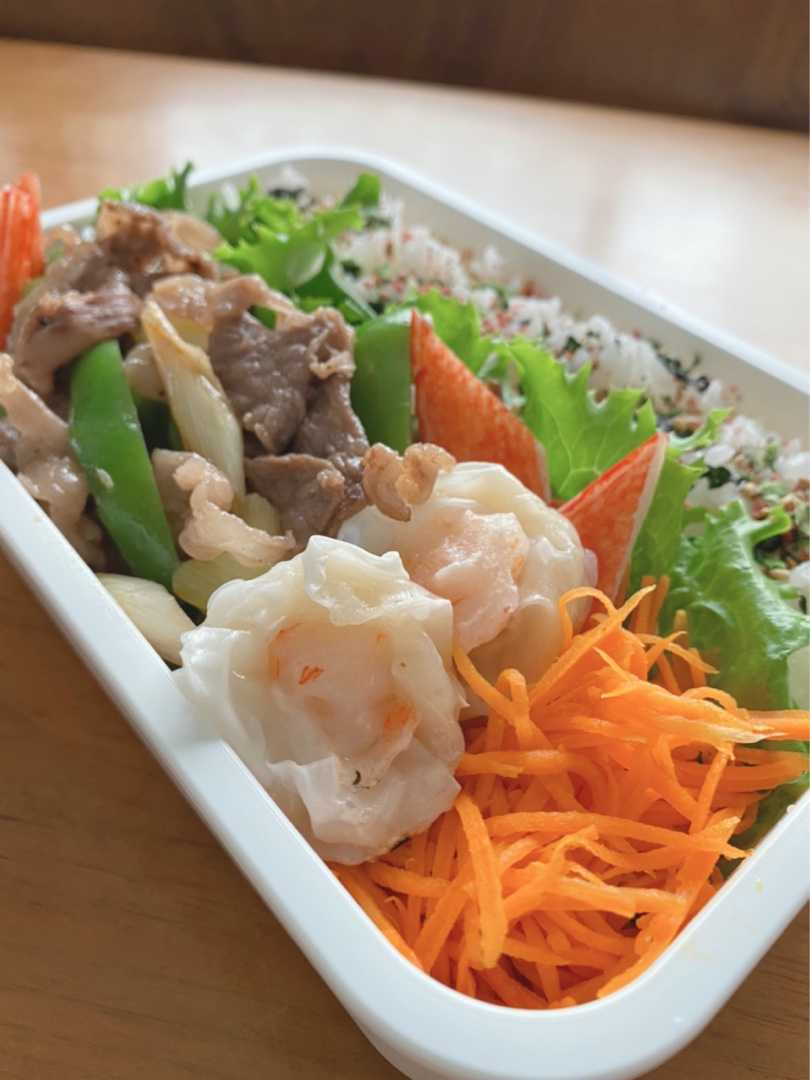 今日は牛肉と野菜の炒め物をガッツリ入れました