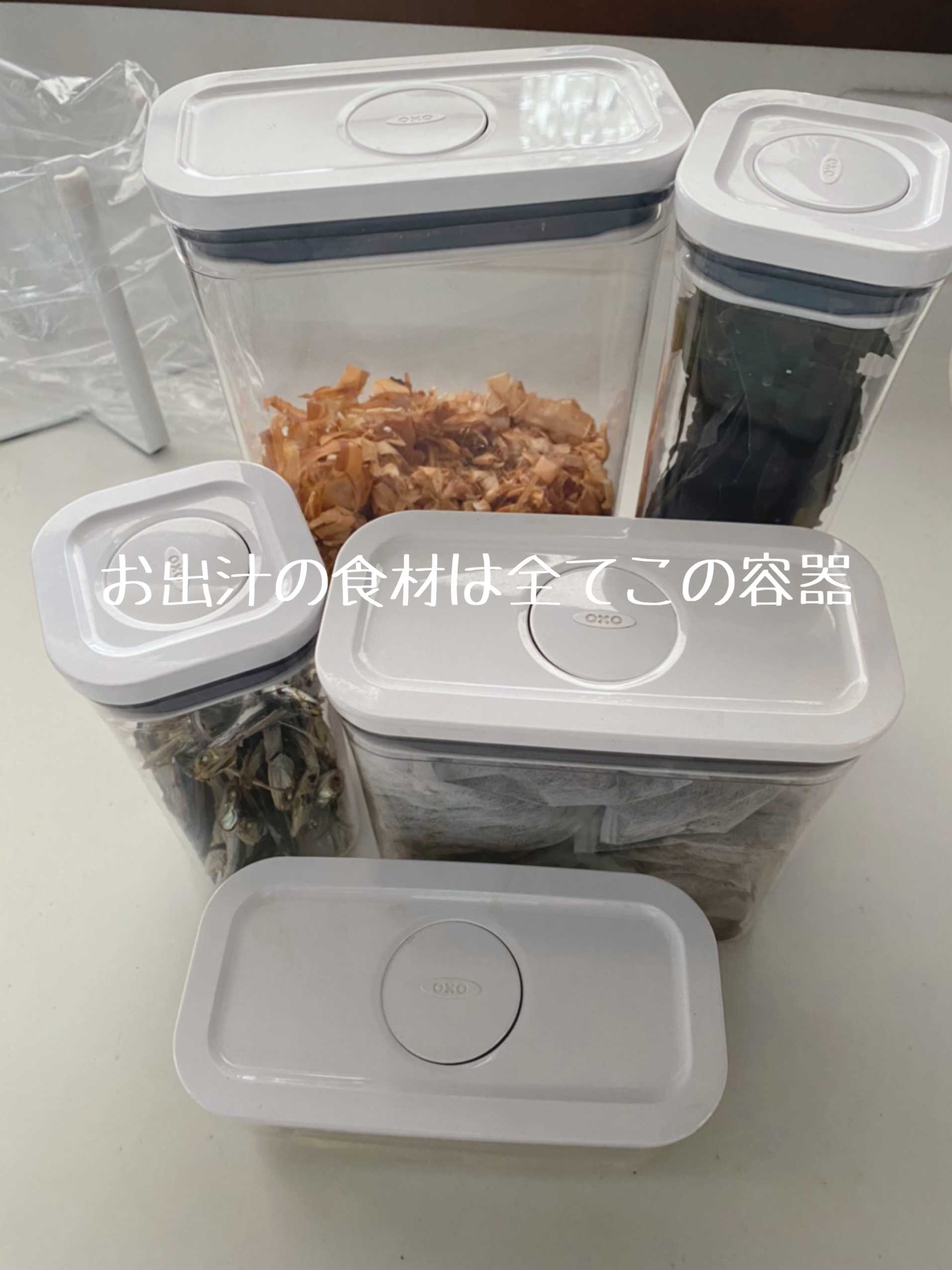 容器ばかりですが、お出汁をとる材料保存は
