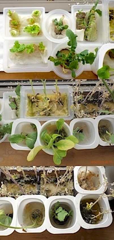 「大根のヘタ」の花の背景に「小松菜のヘタ」の花々↓↓↓