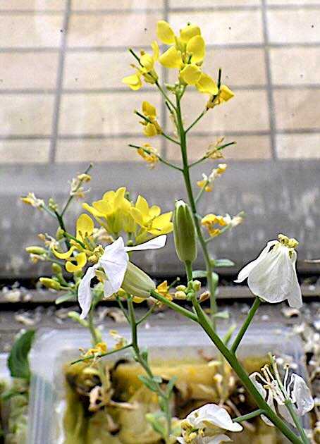「1.28小松菜のヘタ」の水際にも開花↓↓↓