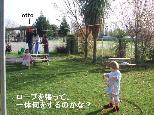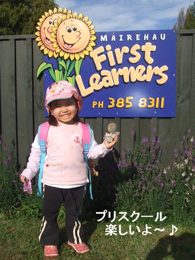 皆様に、結構長い間隠していたことがあります…。「え?ナニ??実はずっと日本の山奥かどこかに雲隠れでもしてブログを書いていたとか??」なんて、もったいぶるような話じゃないのですが…(笑)。(↑でも、それはそれで結構おもしろいけど…。)ようやく写真が用意出来たので、今日はその話をひとつ。---komoがプレイセンターに行っているのは皆さんご存知の通り。先学期(年末まで)は週に5回という怒涛の出席率を誇り、センターでもある意味有名な日本人親子として名を轟かせていました…。しかし、今学期からは週に3回の出席にし、今年から週2日『プリスクール』に通い始めました。komoの最近の話題によく名前がのぼるNiaとElleanoraです。よく遊んでもらっているようで、komoが来ると笑顔で出迎えてくれます!プリスクール、というのは日本で言う保育園にあたります。幼稚園もありますが、時間数も短く週に3日程度のようです。それに比べてプリスクールは週5日、好きな時間だけ預けることが出来ます。(園により開園時間は異なり、時間によってお月謝も変わる)え?Niaとkomoって1歳しか変わらないの??あの身長差って一体…。(ひとつ前の写真参照)--ビザが取れてから、ottoの職探しも始まったため、いつ何時保育園が必要になるかわかりません。仕事が見つかってから探すのでは遅いので、ひとまず先に場所を確保しようと思い、今年の初め園探しをしました。どこの保育園も順番待ちで、近所の保育園は全滅…というのも、この7月から政府がプリスクールに対して補助金を出すことになり、人気が出てきているのです。困ったなぁ。どうしよう…半分諦めながら、車を走らせていました。電話帳片手に今度は少し離れた場所に探しに出ることにしました。探し始めた当初の予定とは少し違うエリアに、その保育園はありました。看板を見ると、電話帳と違う名前になっています。あれ?どうしてだろう?ひとまず中に入ってみると、先生達が温かく迎えてくれました。その保育園。2週間前にオーナー(経営者)が変わり、定員数を10名増やすところなんだそうです。今なら空きがある、とのこと。これは渡りに船です!!彼女が主にクラス運営を中心的にしています。若くてユーモアのある、とても優しい先生で、すごくチャーミングです。komoが話す英語は彼女の影響が大きいと思います。とはいえ、いくら空きがあるからと言っても、すさんだ保育園では困ります。でも、すごく雰囲気が良く、家からも車で通える、ということもありひとまずトライアルレッスンを受けることにしました。トライアルは案の定すんなりと進んだので、即入園を申込みました。現在週2回、9時から15時まで通っています。彼女が初めて園に訪れた時に案内をしてくれました。とても明るい素敵な先生なので安心しています。今までkomoはプレイセンターで必ず私かottoと一緒だったので、離れて過ごすことを嫌がるかと思いきや、komoは1人で行く気マンマンです!今の所、一度も泣くことなく楽しそうに通っているので安心しています。あのkomoが、あの、人見知り大魔王のkomo(爆)が!!信ずぃられますぇん、アタクシ、ほんっとうに、信ずぃられますぇん!(デヴィ夫人風に)--多分、komoはプレイセンターで・英語で話しかけられることに慣れた。・英語が多少わかるようになった。・『親以外の人』で優しくて信頼できる人がいるということを知った。・自分だけでも滞在できるという自信が持てる年齢になった。などの色々なことを学んだんだと思います。本当に感謝です。--先述した2人の先生も本当に素晴らしい先生なのですが、komoの会話には絶対に欠かせないのが…?Mrs Chrisはとても親日家。「今までに悪い日本人を見たことがない!」と言い切る(?)くらいです。ホームステイでアジア人を受け入れたりしているらしく、日本人は本当に素晴らしいといつも誉めてくれます。そんなことがあるからか、komoはMrs Chrisに異常?なほど可愛がられている様子…。komoもMrs Chrisが大好きなようで、プリスクールに行く前には必ず、「きょうってみしすふりすいるかなぁ?」と言ってから出かけています。(Mrs Chrisと言えない…)ニュージーランドの教育は至って自由奔放。そこが良さでもあるのですが、たまに「そこまで自由で良いのかしら?」と思うこともしばしば。あまり怒ったり、注意したり、ということがありません。その点Mrs Chrisはかなり教育的。ビシッと厳しくやってくれるので、ottoはその方針が大好きなんだそうです(笑)。でも、ただ厳しいだけじゃなく愛情いっぱいで見てくれます。--初めは英語の環境ということで心配もありましたが、先生方曰く、「komoは年齢に対して少し小さめの体つきで、英語をそこまで話さないけれどフレンドリーだから、皆から可愛い『赤ちゃん』と勘違いされているみたい(笑)。」だとか。良い意味で勘違いされて、ラッキーな子です(笑)。先生方がとても気にかけてくれているので、たくさん声をかけてくれているのでしょう。子ども