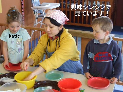 今日はペアレントヘルプの日。前日の夜、無い知恵を絞って一生懸命何をするかを考えたottoとyome。あ~でもない、こ~でもない、言いながら、考えたのは「蒸しパン」を作ること作り方も図解でわかりやすくし、ottoが材料に研究を重ねに重ね、何とかやれそうだということになりまして、勢い勇んでセンターに向かいました。-----今日のパートナーはEleanorです。私達は早速キッチンに入って蒸しパンの準備をしようと思うと…、そこにビニール袋がありまして、中に何やら入っています。すると、笑顔のEleanorがやって来て、「yome、otto、ウチのKatieがrice ballを作りたいって言うのよ。今日yomeとottoがいるから一緒にやろうと思って持ってきたの!教えてくれる?」しまった、料理セクションがかぶった…←別にいいんだけど!とは言え、当初巻き寿司を作ることも考えていたので、こうとなったら「おにぎり」と「巻き寿司」を同時進行したほうが良いのでは無いか?と思いました。キッチンも込み合うしね!というわけで、急遽蒸しパンは中止にして、急いで家に材料を取りに帰りました。と言うのも、Eleanorの袋の中には・米(リゾット用の細長いお米)・ツナ・○ツカンの米酢・NZブランドの醤油・小鍋が入っていました。お米はまず使えないので(バサバサで握れないと思う)、私達が食べているお米を持ってくることに。また、鍋で炊くのは難しいので炊飯器を持ってくることにしました。その他、海苔や巻き簾色々と用意しました。それにしても、何でEleanorは日本のお酢なんて持ってるのかしら??こちらでは超高級調味料なんですよ!!加えてニュージーランド製醤油なんてのがあるなんて知らなかったです。かなり興味をそそられます(笑)。袋の中身を見ただけで、外国の人のおにぎりに対しての間違った(?)認識が垣間見られますね(笑)。だったら、ホンモノを食べさせてやろうじゃないの!!---中身はツナ、玉子焼き、レタスというkiwiでも馴染みやすいものにしました。子ども達はおにぎりを作り、大人が巻き寿司をすることに。準備が整うと、興味のある子ども達が続々と集まってきました。もちろんKatieもいます。おにぎりにはお酢は使わないこと、塩を使うんだよ、と教えてあげて、お水をつけ塩を手のひらに伸ばします。その作業はとても不思議なようで、みんな目をキョロキョロさせながらやっていました。komoももちろん作りましたとも!作ってその場でいただきます、でした!色々なお母さんがいますが、特に日本語や日本のことに興味があるのが、スーパーバイザーでもあるSusanです。彼女は日本語の歌などをよく歌っています。もちろん巻き寿司にも興味シンシンです。大人が興味津々、ということは、子どももしかりです。当初、巻き寿司は大人が作って食べさせてあげる、と思っていたのですが、もちろん子ども達もやりたいと言い出しました。大人の人数もそこそこいたので、手伝いながら作ることに!これが、意外や意外、子ども達は本当に上手に巻くんですよ!前回、komoがミシンを使った時と同じく、子ども達というのは初めてのことや、注意がいることがよくわかるんですね。出来ない、と決め付けてしまうのではなくて、「よく聞いて、見て、一緒にやってみようね!」とすれば、大人も子どもも一緒に楽しめるんですね。改めて勉強させられました。---もちろんkomoさんも 、 そして、巻けました!出来たお寿司はこんな感じ?食べているところも写真に収めるべきですが、みんなガツガツ食べててそれどころじゃなかったので写真はありません、エヘへ。あ、そうそう、NZ製の醤油ですが、私達にはちょっと無理かもしれません(笑)。醤油じゃない別の物体でした…。←お好きな方、スミマセン。-----セッションが終わるとEleanorとKatieがニコニコ顔でやってきてお礼を言われました。やり方がわかったので、是非お家でも試してみたいって言ってました。毎回思うのですが、センターは『子どもの笑顔と安全』が守られていればどんなことでもチャレンジできる場所です。あまり凝り固まらずに、色々なことをやっていってみたいなぁ、と思いました。ただ、私も典型的な日本人。創造することが苦手…ottoと頭を悩ませる日々は続きそうです(笑)。